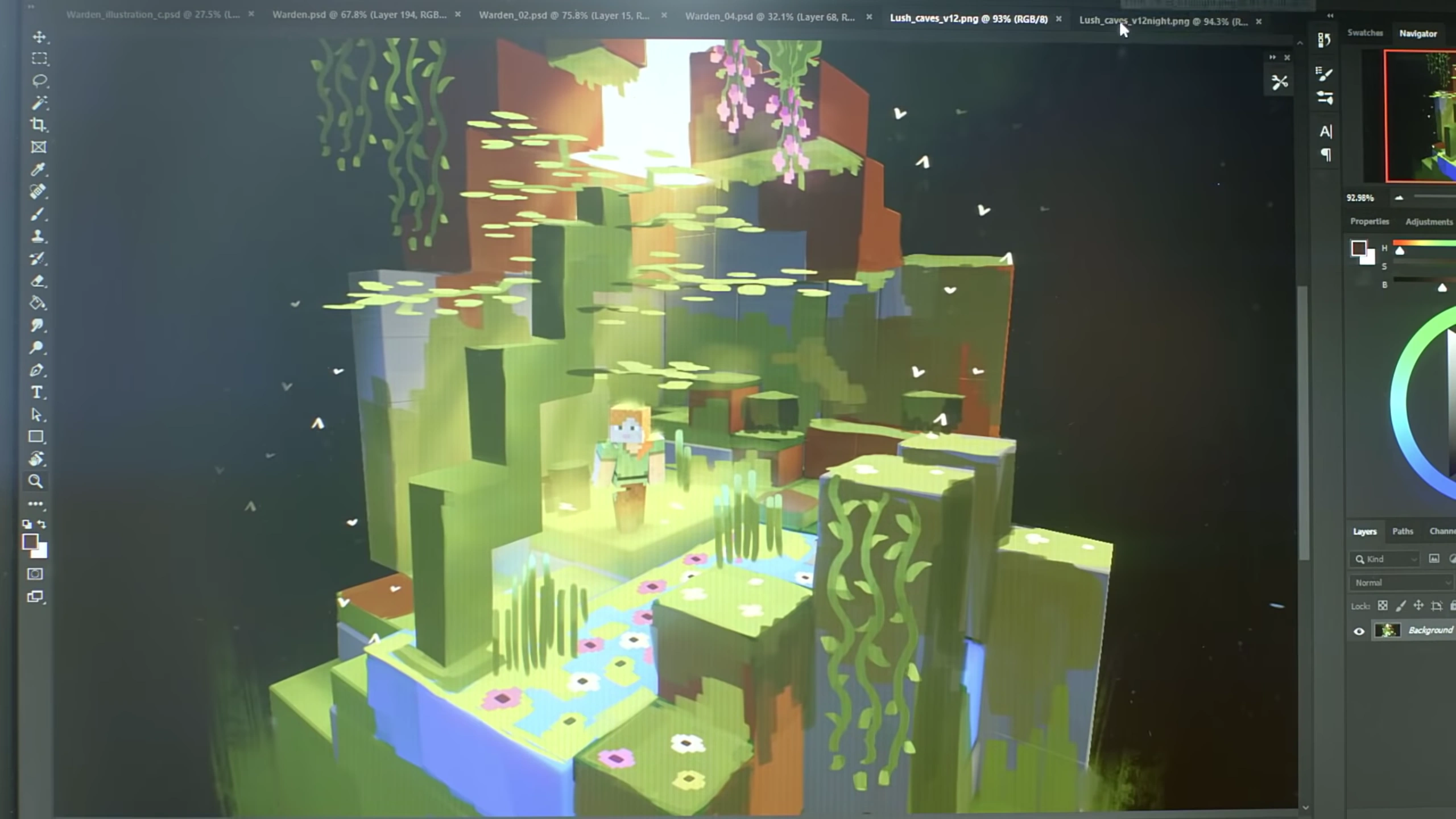 Swedish painter John Bauer was one of the main inspirations behind the design and idea of the lush caves biome, specifically Bauer's 'Oskuldens Vandring' (Innocent's Journey) painting.
