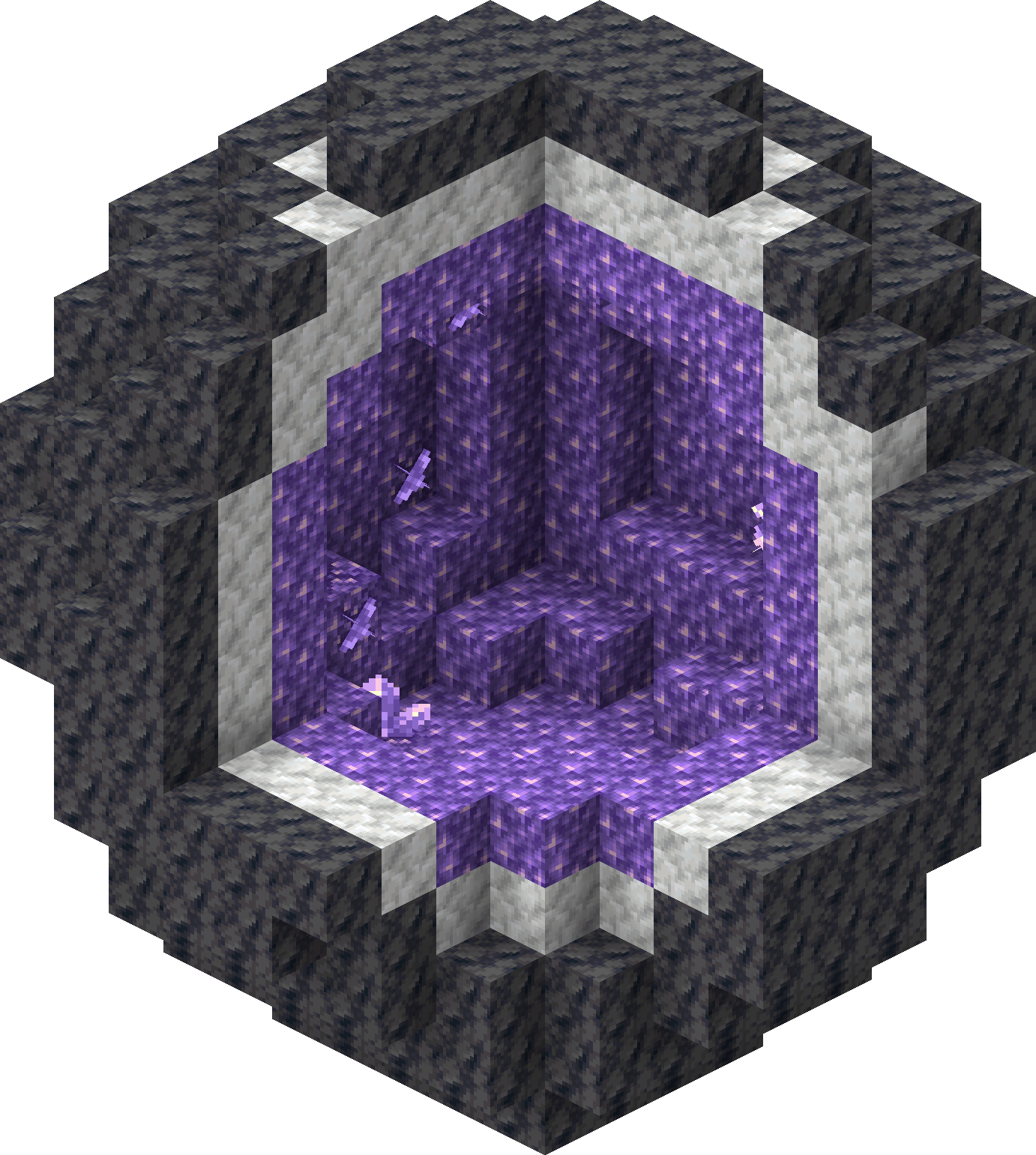 - Spawns between smooth basalt and blocks of amethyst, much like real-life geodes.