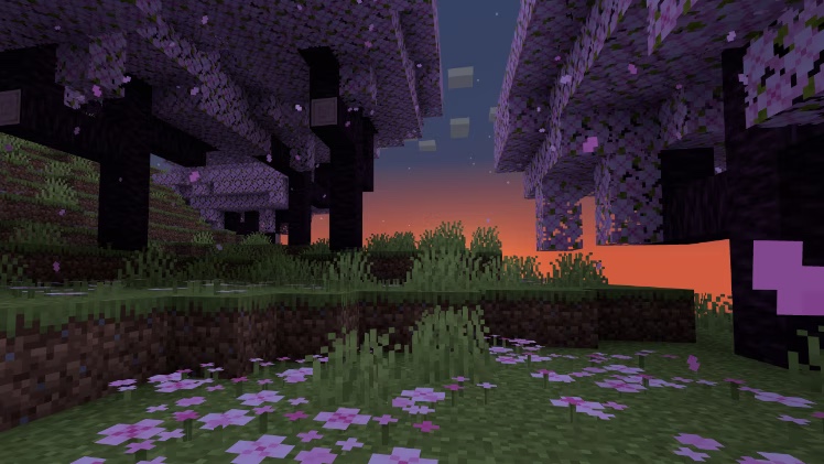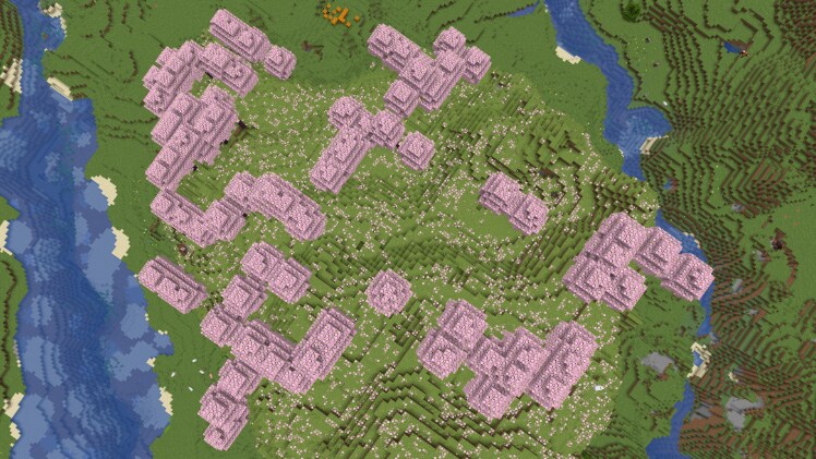 A cherry grove is a mountain biome, very similar to meadows. The main feature of cherry groves are cherry trees, which generate exclusively in this biome.