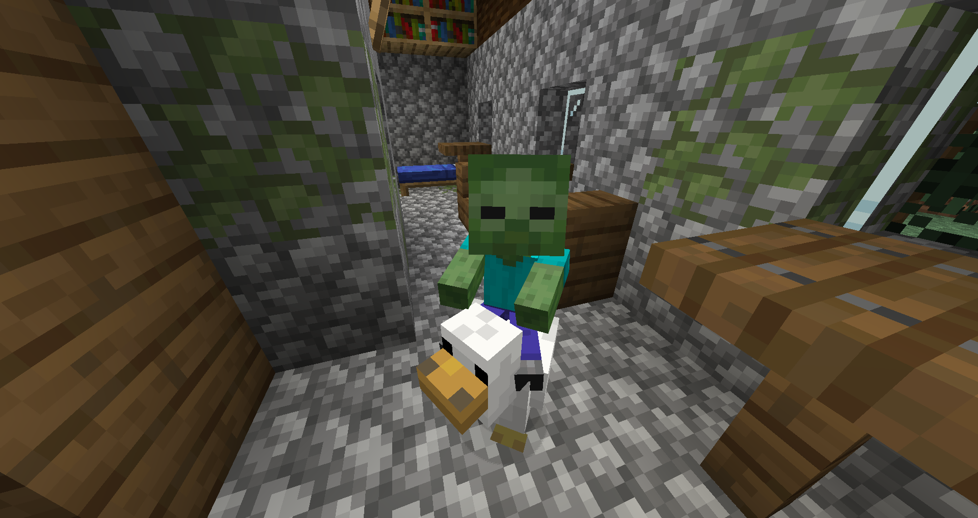 A chicken jockey that broke into the player's house.