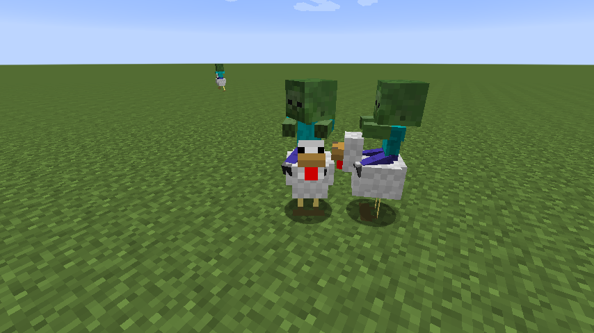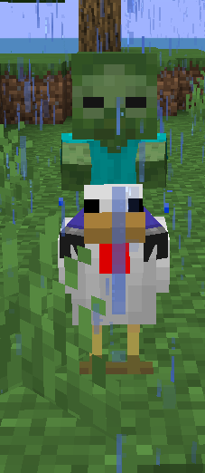 - Chicken jockeys fall slowly and do not take fall damage, like normal chickens.