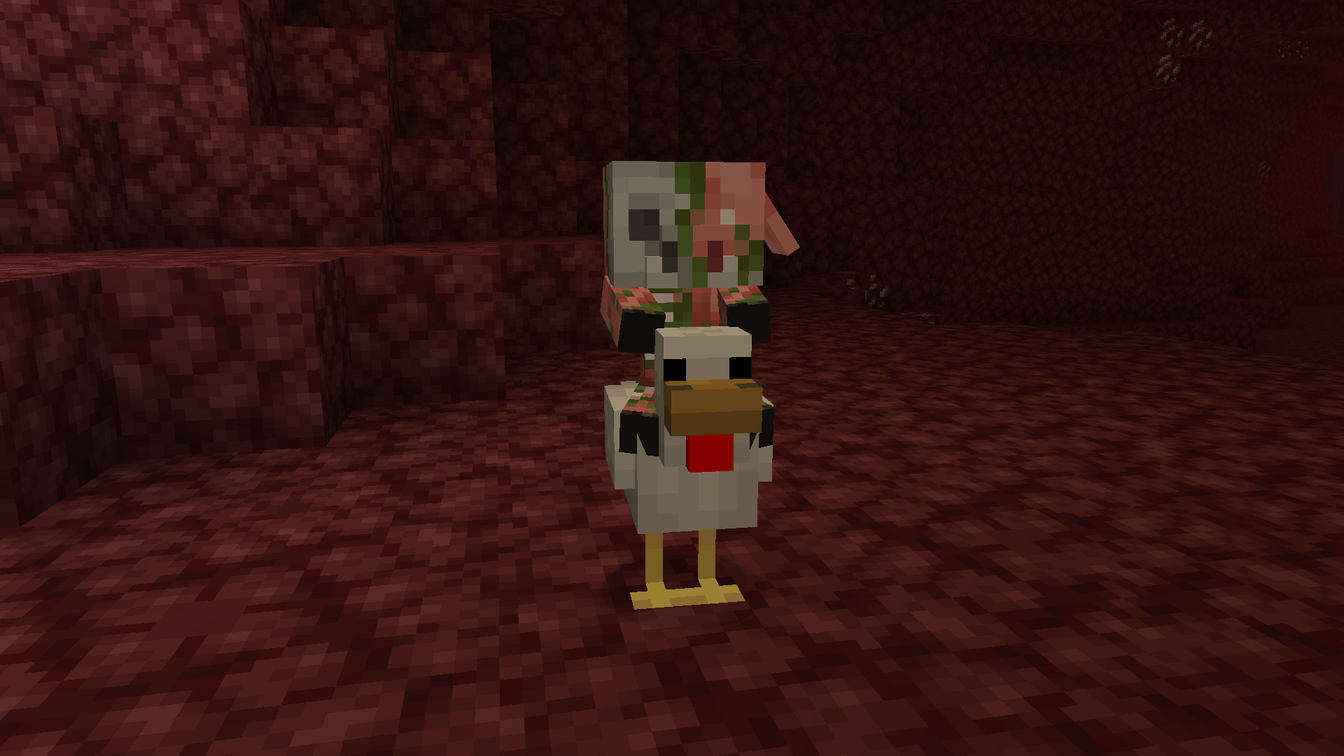 A zombie pigman chicken jockey in the Nether.