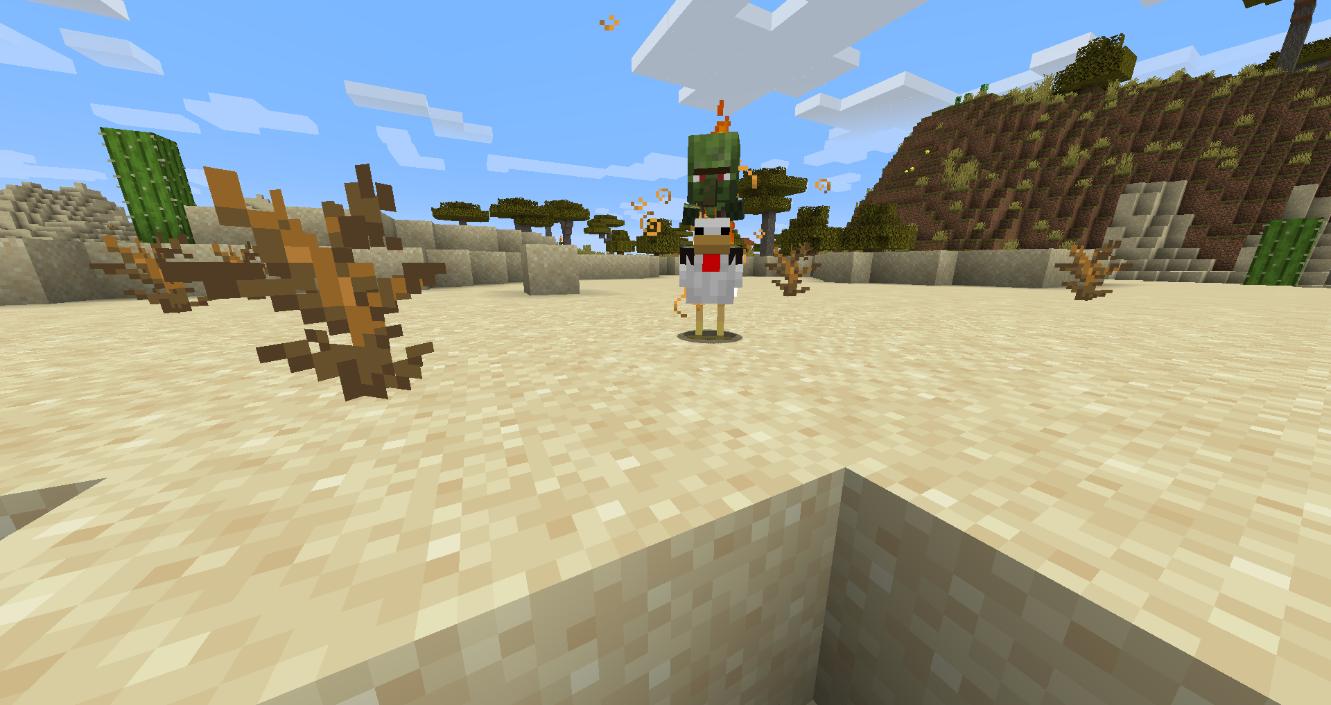 A husk chicken jockey in a desert biome in the early morning.