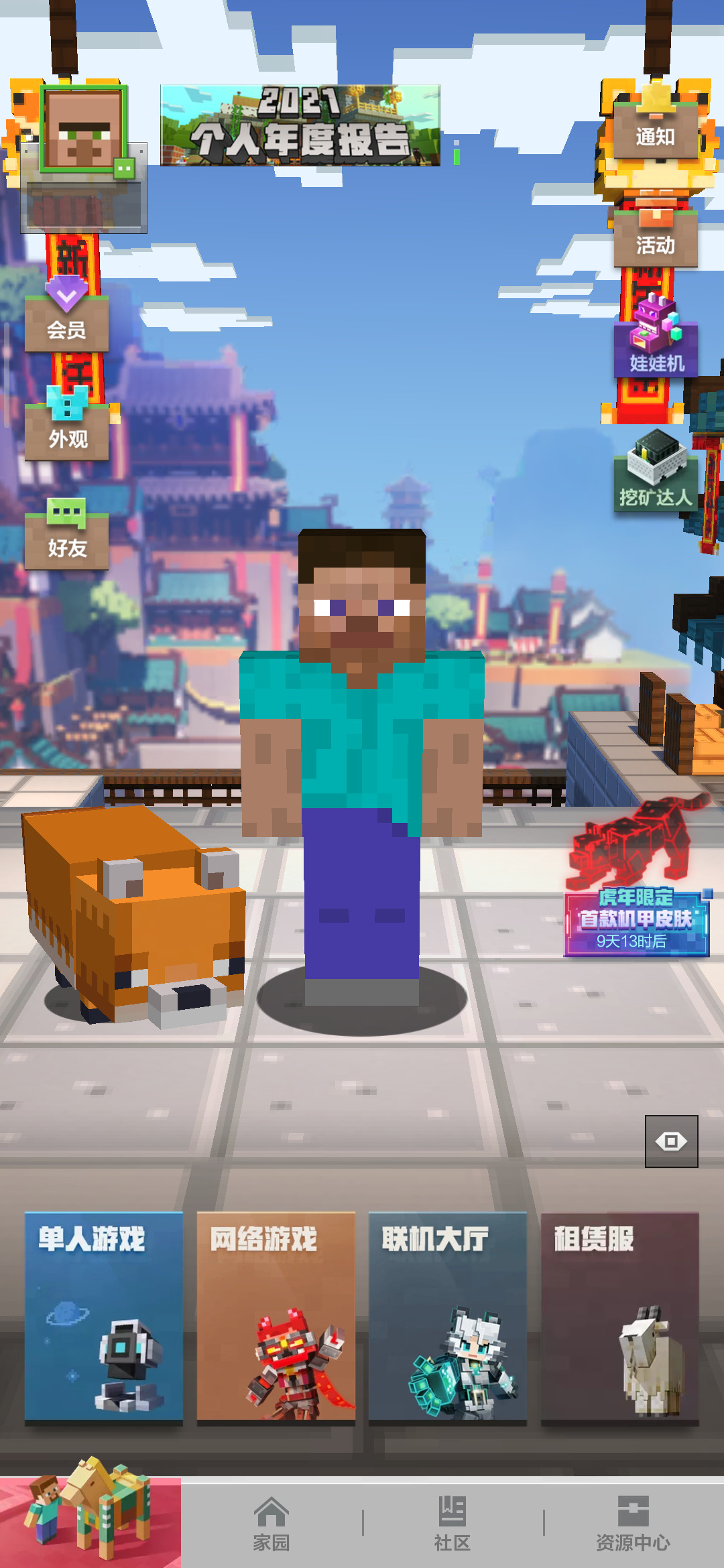 Resource Center (Simplified Chinese: 资源中心 Pinyin: Zīyuán zhōngxīn): Similar to Marketplace, it allows players to buy and download game maps, add-ons, texture packs, and skins.