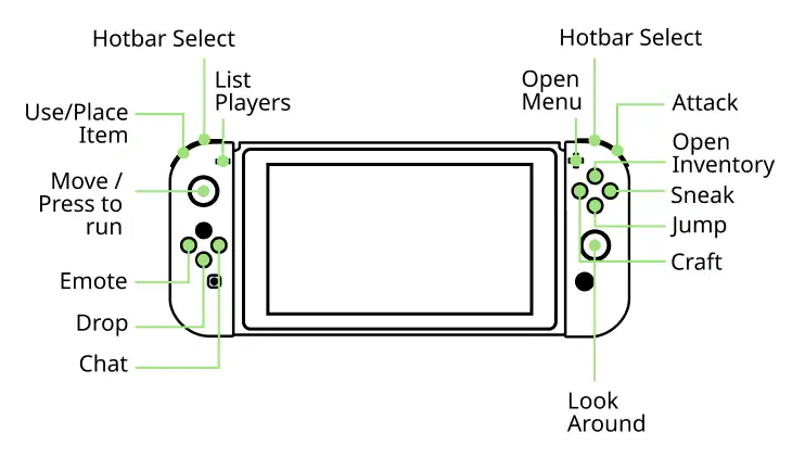 ![Default Nintendo Switch controller diagram.[a]](https://static.wikia.nocookie.net/minecraft_gamepedia/images/2/2b/Nintendo_Switch_controls.webp/revision/latest/scale-to-width-down/120?cb=20230609081800)