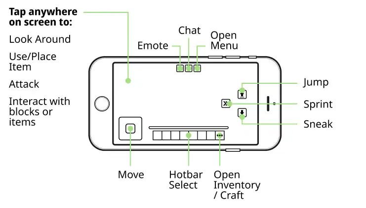The "Keyboard & Mouse" controls are similar to Java Edition, with a few differences. These controls can be changed in the Options. Keyboard controls are unavailable on the Nintendo Switch and are normally unavailable on Android, iOS, iPadOS, and Fire, but are possible to use from connected external keyboards. Mouse controls are unavailable on the Nintendo Switch.