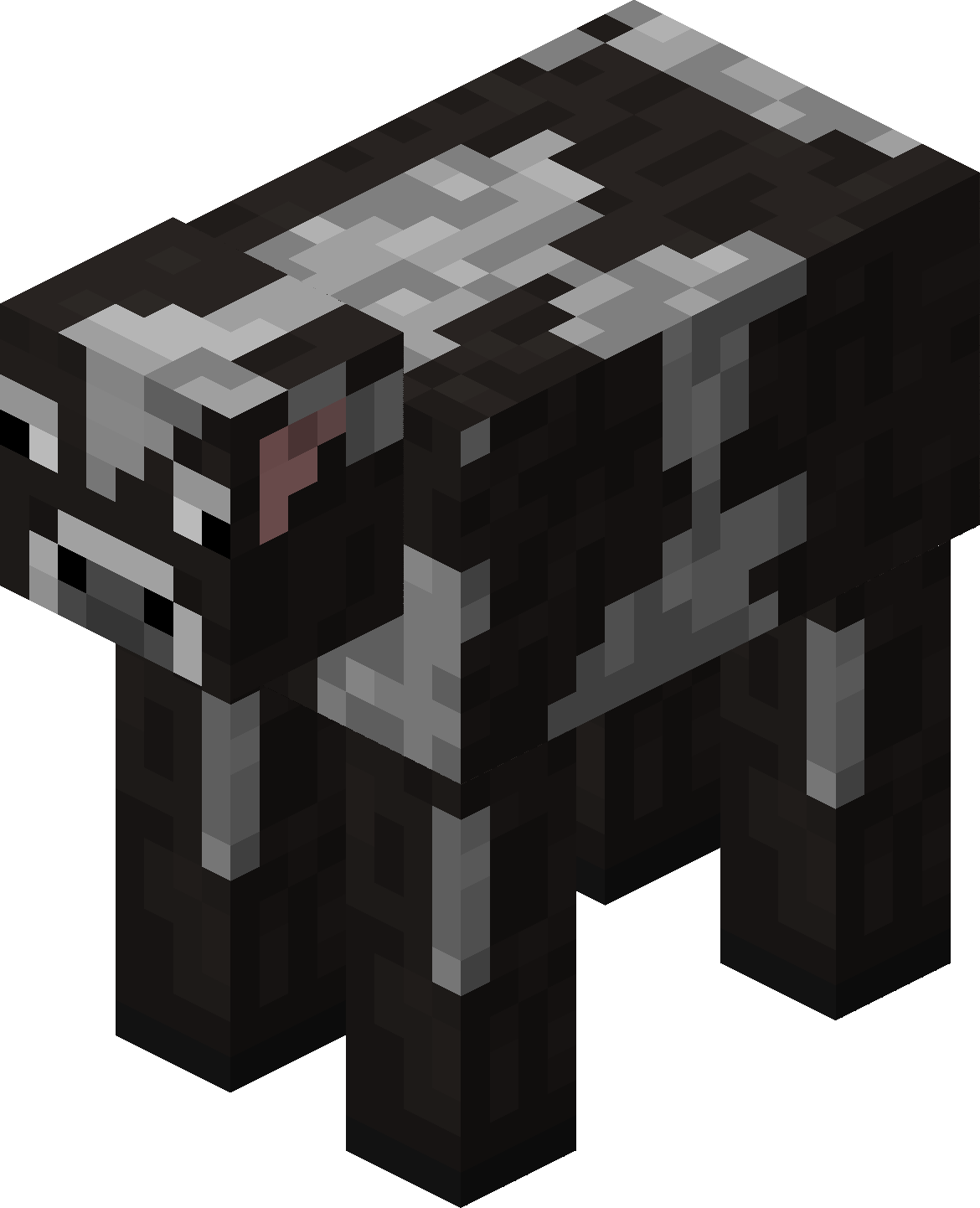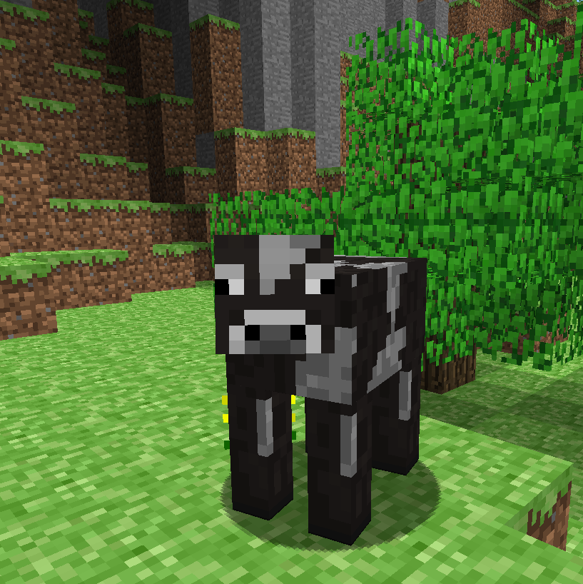 A cow is a common passive mob and a source of leather, beef and milk. Cows are found in most grassy biomes.