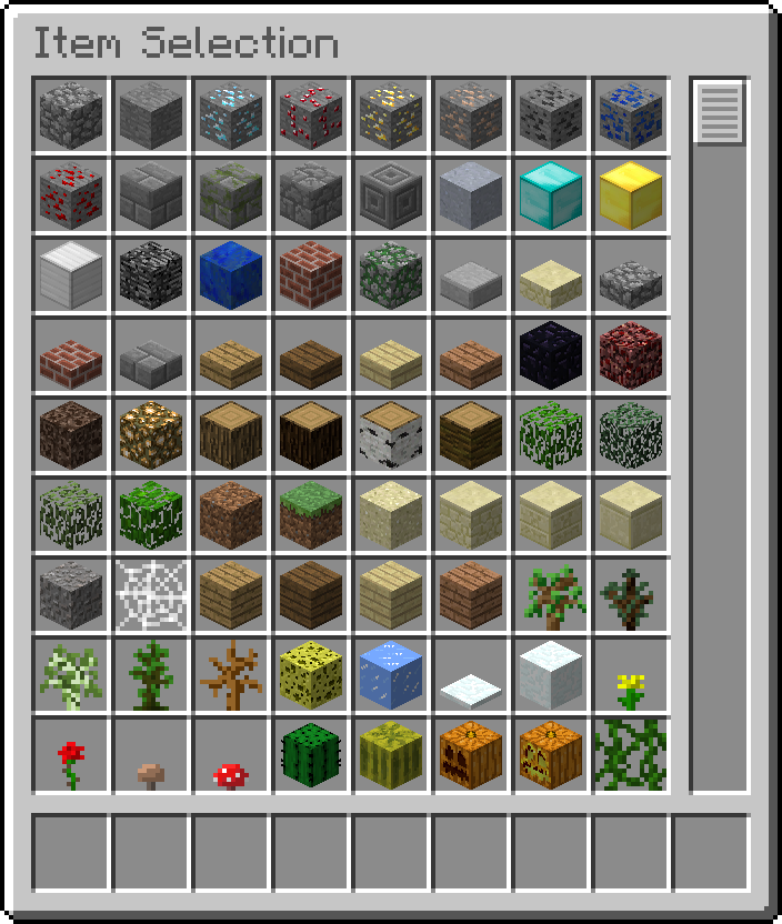The Creative mode item selection screen prior to 12w21b