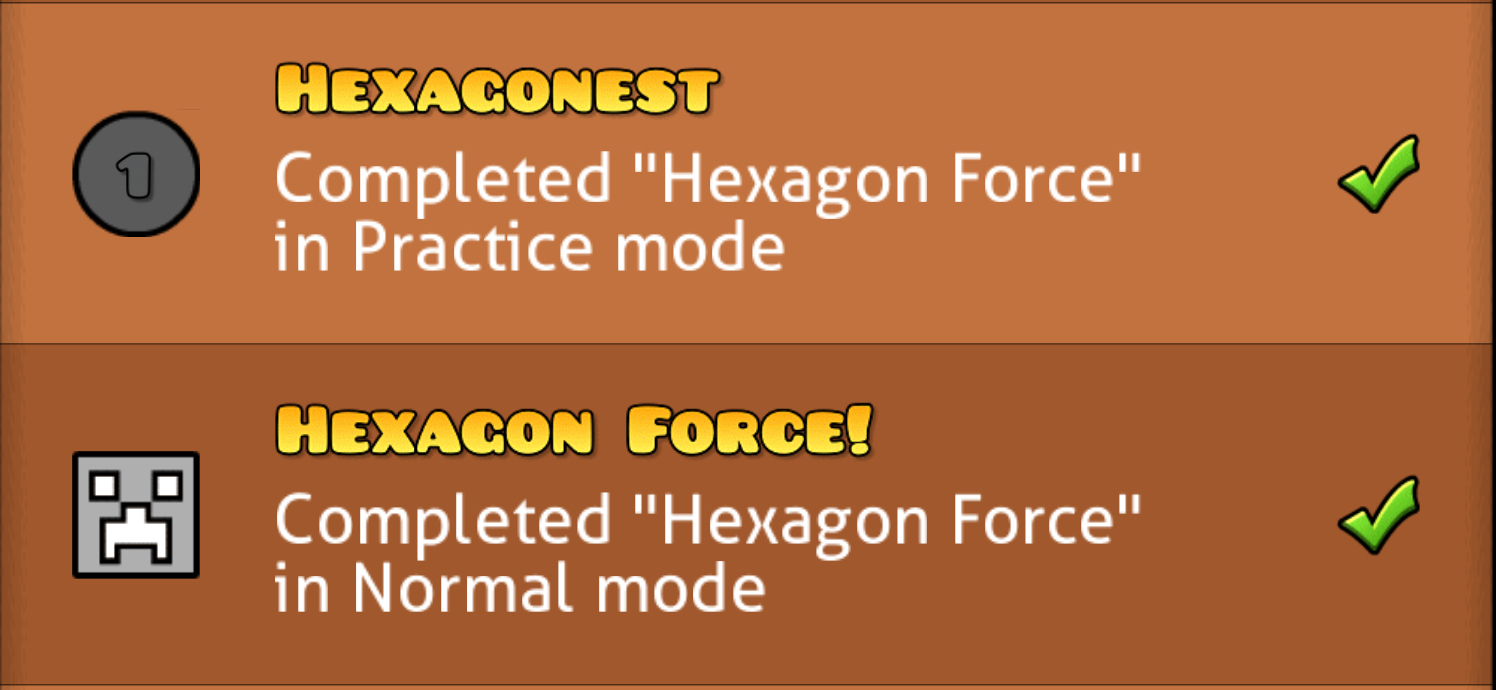 - In Geometry Dash, beating level 16 (Hexagon Force) on normal mode rewards the player with a creeper face cube. This can also be colored to make it look like a normal one.