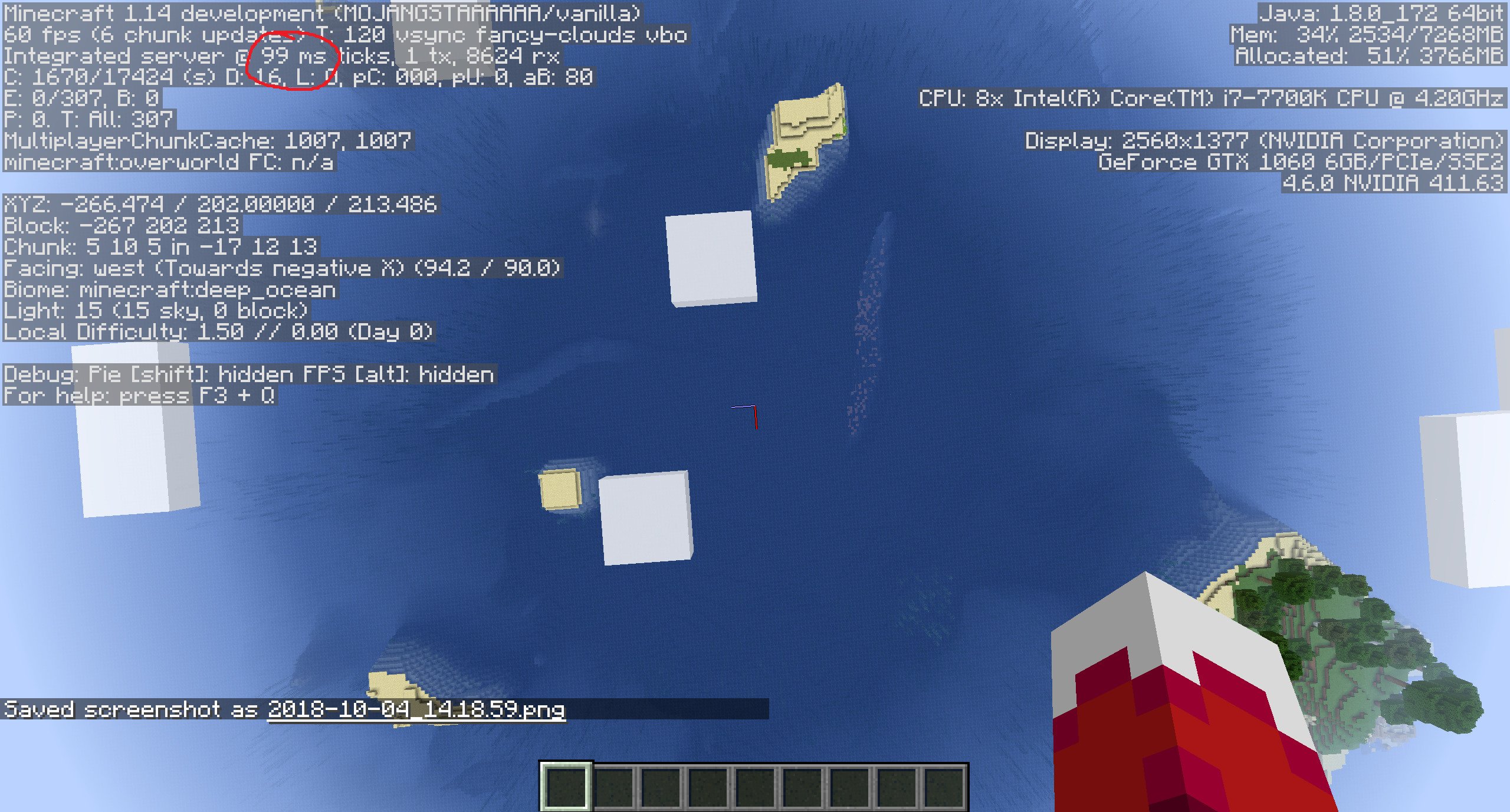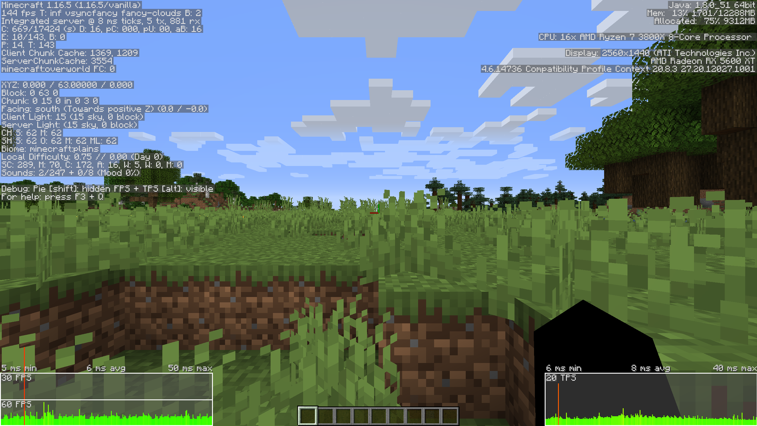 | Chunks[C] W: cached, loadedC E: loadedE,sections,ticking | Information about client-side chunks: | Yes |