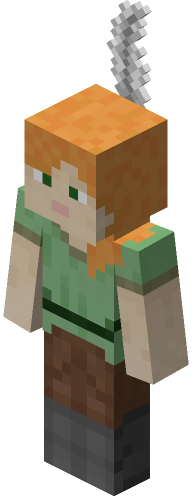 In version 1.8, Alex was added to the game. Invisible pixels include Alex's face with glasses, a reference to Jeb, a Mojang developer, as well as an unfinished arm texture similar to Steve's used texture.