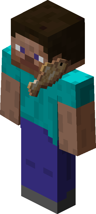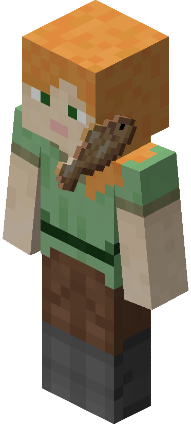 Several items when worn on the head (using /item replace) have unique placements. The end rod and spyglass protrude from the head like a horn, the lightning rod sits at the side like a snorkel, fish look like an ear and mic piece, banners display similar to how pillager captains wear them, fence gates are worn like glasses, bones are held in the mouth like a dog, leads go around the eye like a monocle, and feathers stick up at the back of the head.