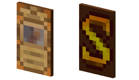 A "Thing" pattern can be crafted using an enchanted golden apple and paper. When put on a banner, it displays Mojang Studios' old logo in whatever color dye was used. It is labeled "Thing" in the inventory. The Swedish word "mojäng" means gadget or thing.