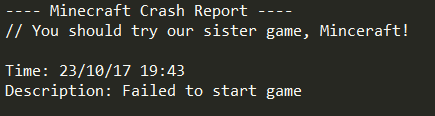 When the game runs into a fatal error and crashes, the crash log includes a message such as "Who set us up the TNT?" or "Hi. I'm Minecraft, and I'm a crashaholic."