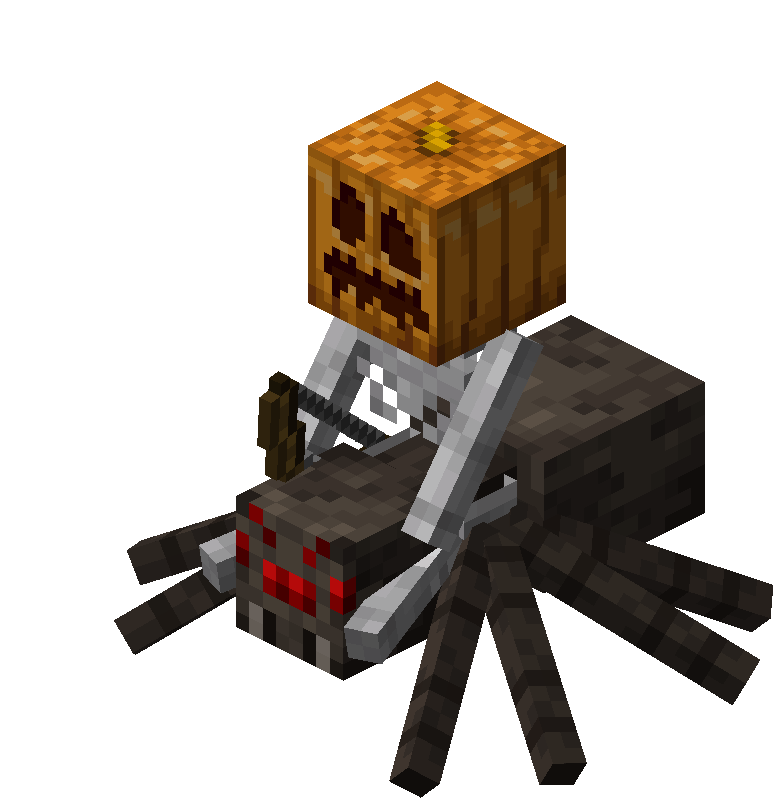 A spider jockey with a pumpkin.