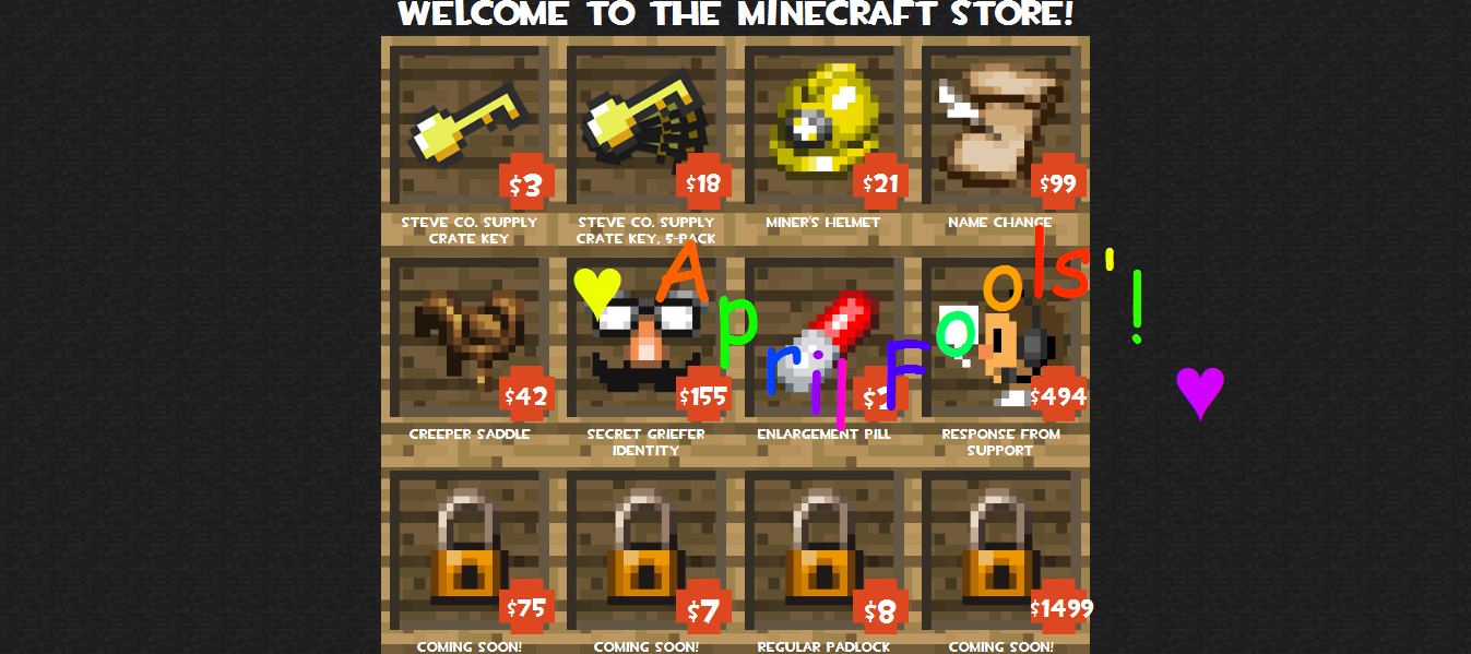 Many joke features and updates are teased on April 1. Some of these, such as stained glass, blocks of coal and horses, eventually made their way into the official game.