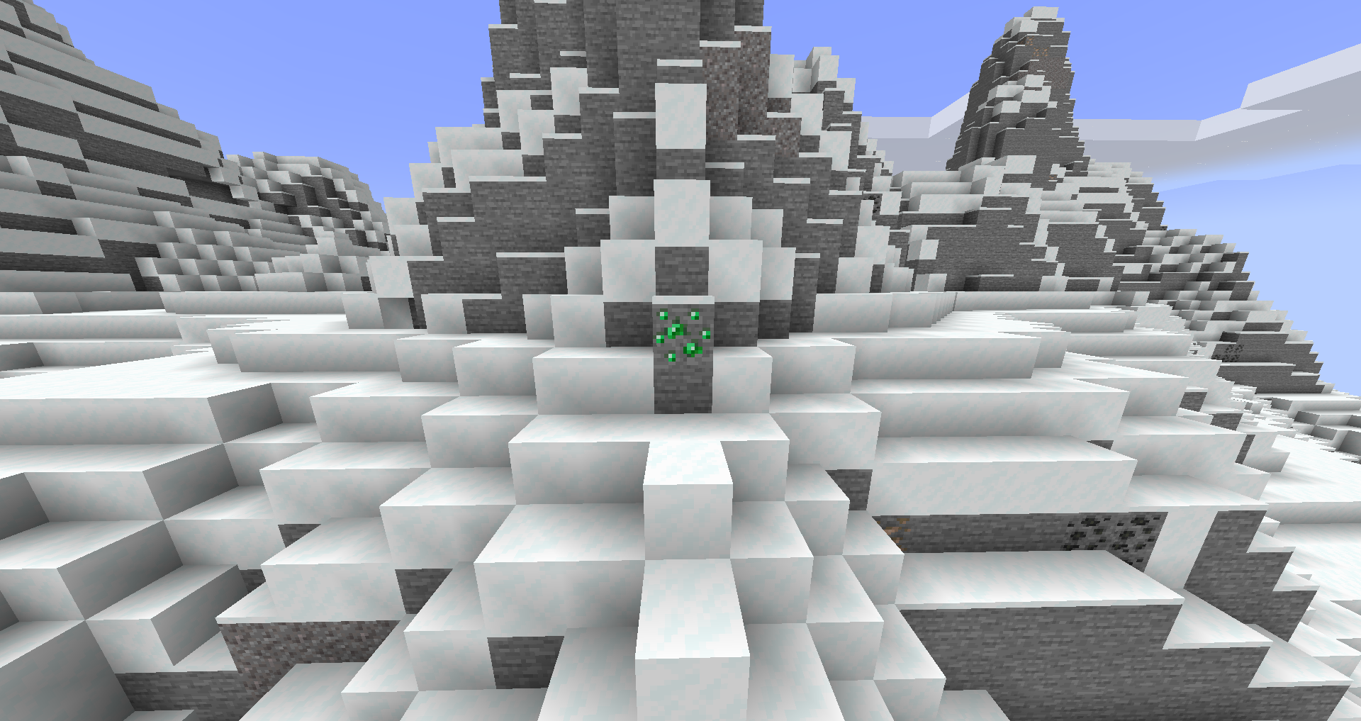 Emerald ore is only generated in Extreme Hills (Edge) biomes. Due to the nature of the generation algorithm, it may be found a short distance into adjacent biomes, but always within the same chunk as an Extreme Hills (Edge) biome.[1] It attempts to generate 3-8 times per each chunk, generating anywhere between layers 4 and 32, meaning it can occur as high up as gold can. It will only generate in locations which would have otherwise been stone - it is thus possible for as few as 2 to 0 emeralds to generate in a chunk. Found as individual blocks, rather than veins, it can be encountered more commonly than gold, which has a similar range.