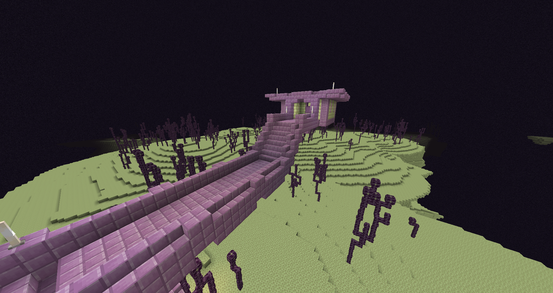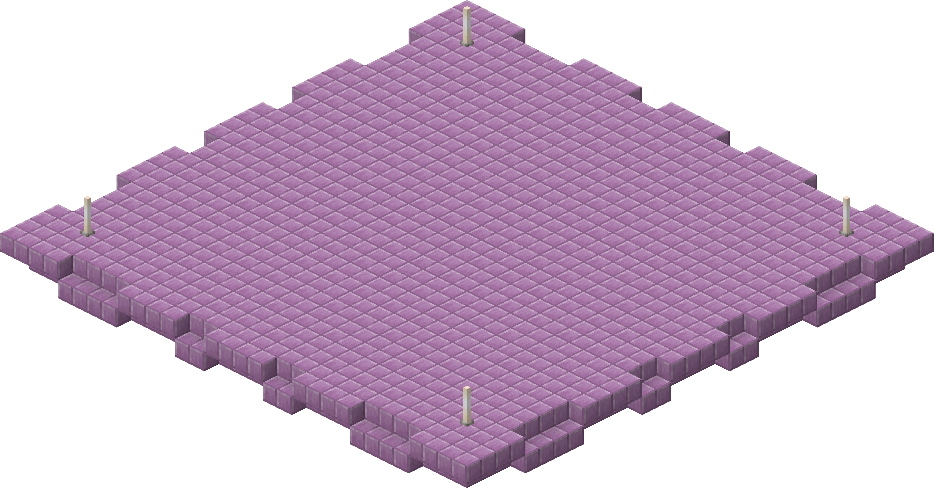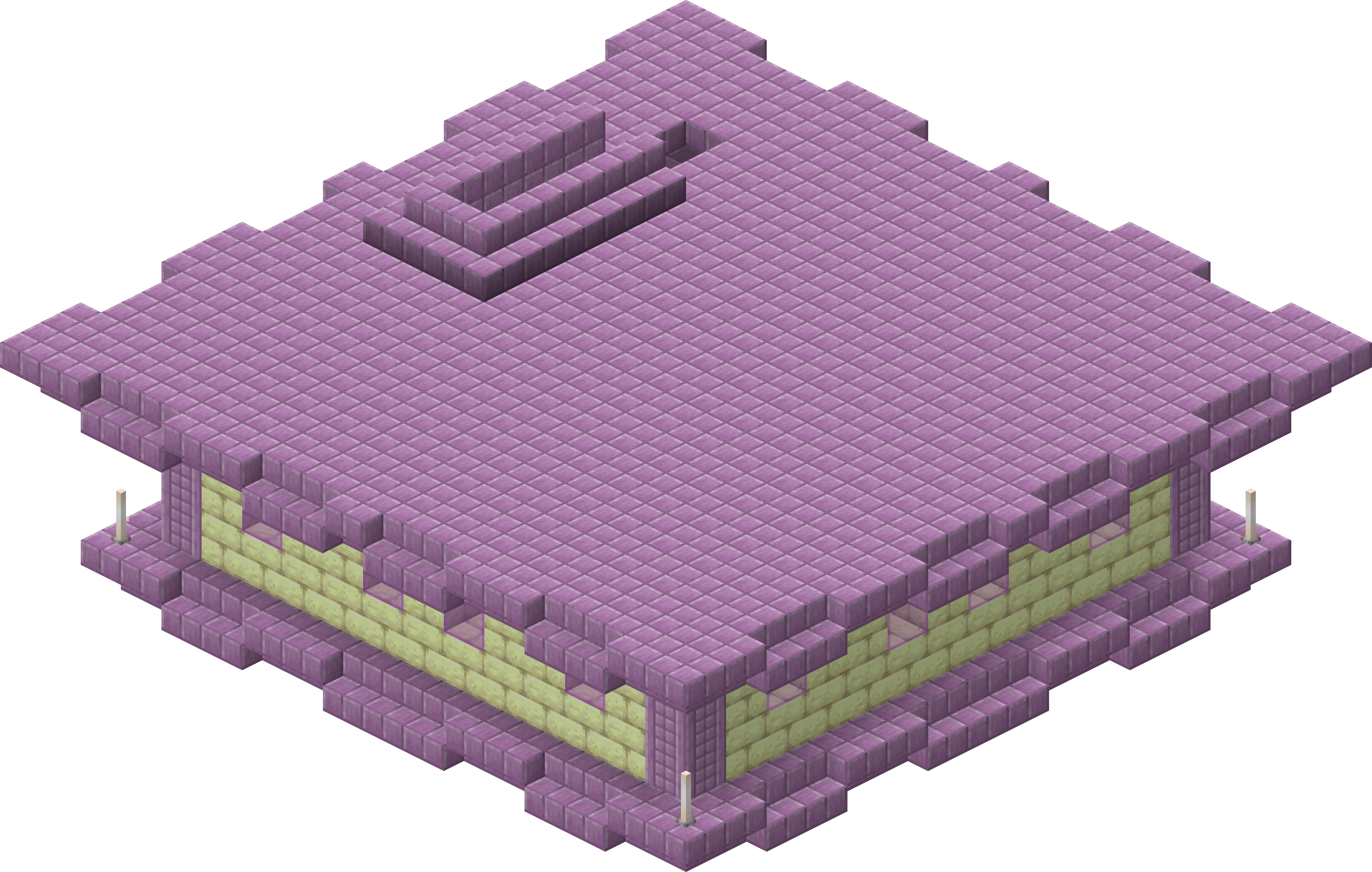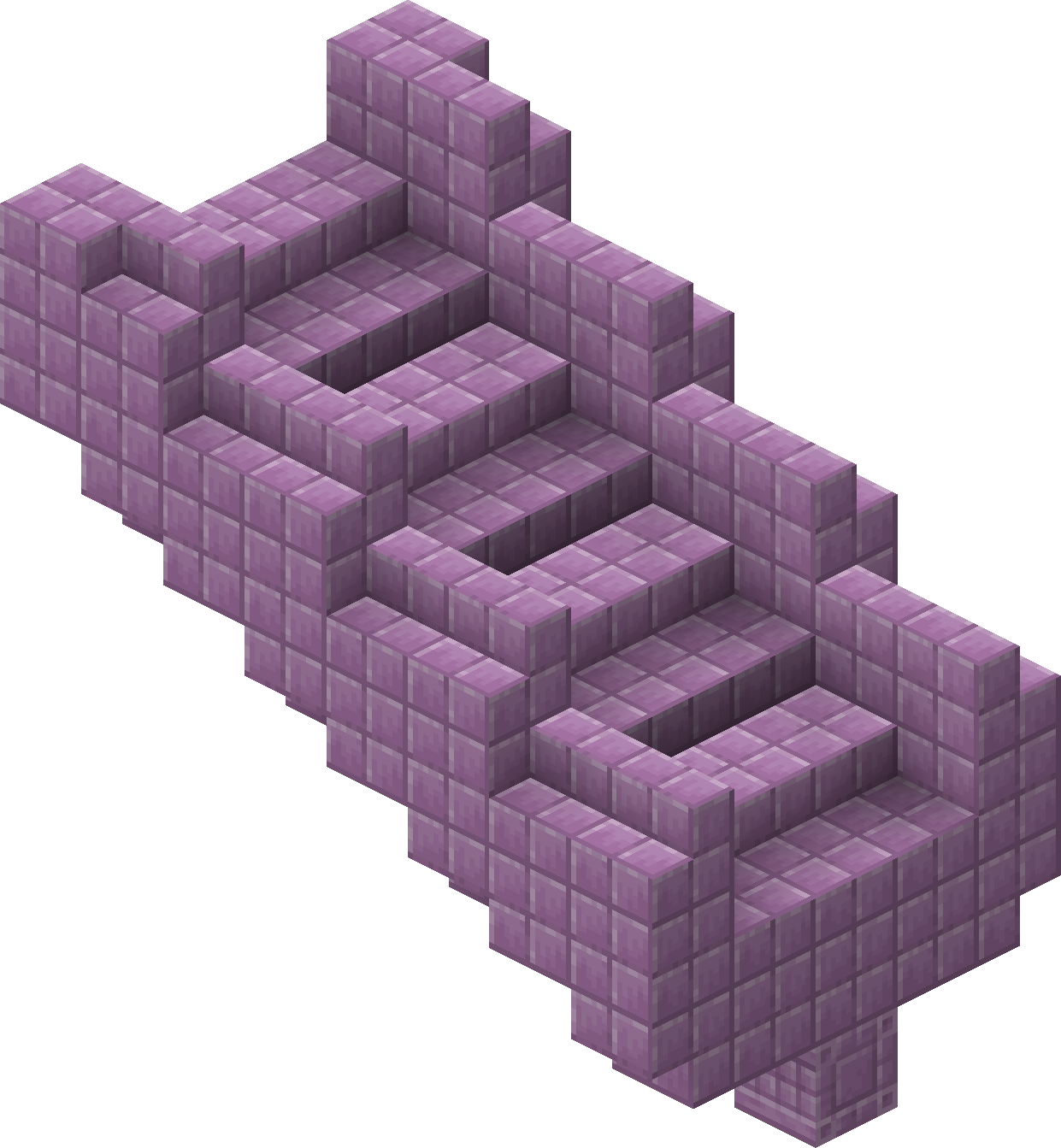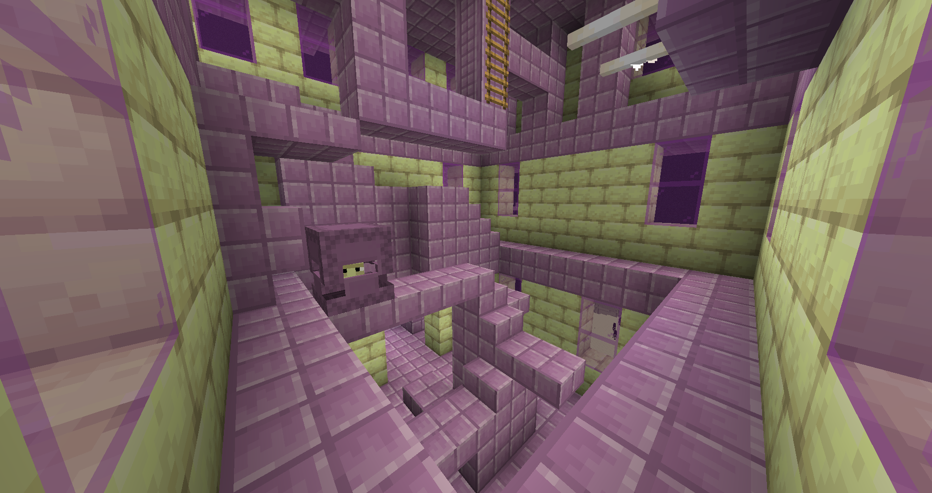 A purpur pillar structure sits in the center, surrounded by purpur stairs. Preceded by a purpur slab staircase. |