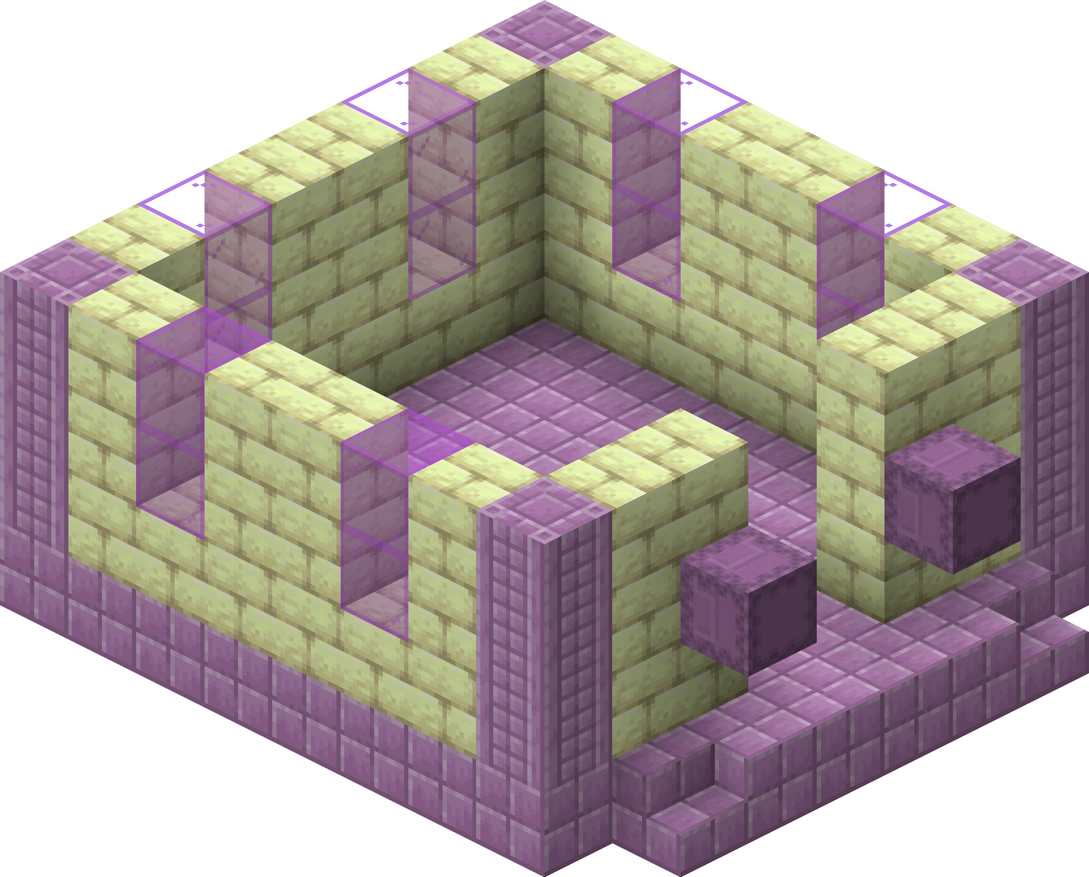 | 15w41a | The iron blocks, book, and hopper have been removed, so that the floor consists of obsidian and purpur blocks. | ||||