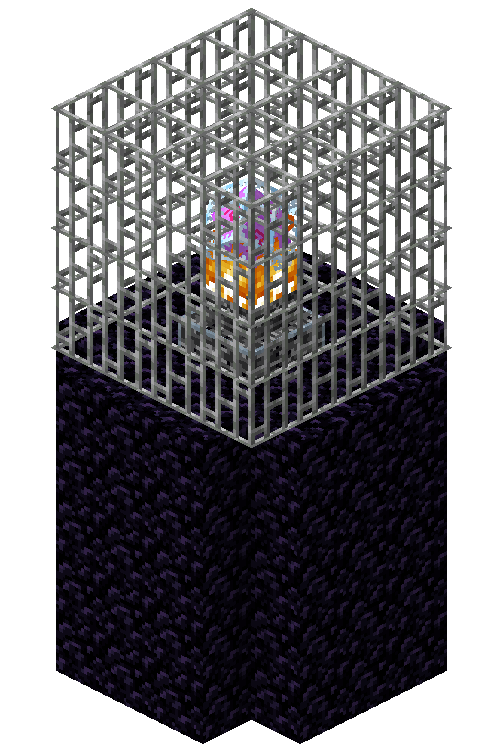 The second and third shortest pillars include a cage comprised of 73 iron bars surrounding the end crystal, to protect it from projectiles.