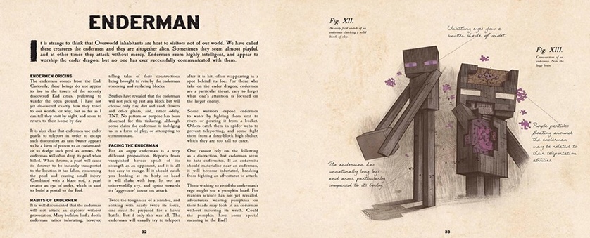 The enderman's entry in the Minecraft Mobestiary book.
