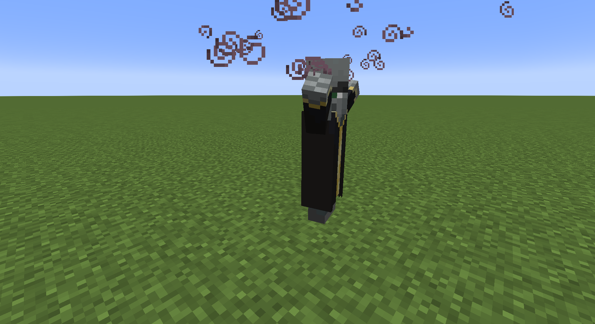An excessive amount of illagers, including several hundred evokers, vindicators, and illusioners spawned by command blocks. Note the abundance of Vexes that originate from the evokers.