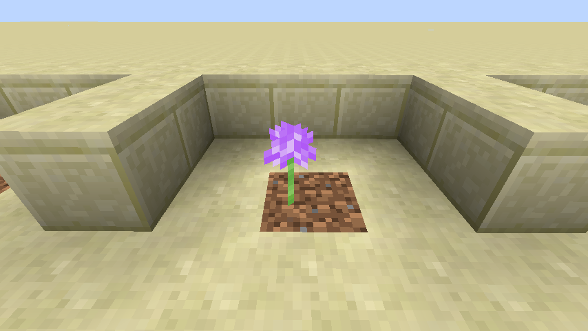 In Bedrock Edition, when bone meal is applied to any single high flower (except wither roses) that has been placed or generated on top of a grass block, more flowers appear around it without grass. With the exception of dandelions and poppies, the flowers that form around are the same type as the original flower. In the case of dandelions, poppies occasionally appear, and vice versa for poppies. The flowers can appear up to 3 blocks away from the original, forming a 7×7 square.