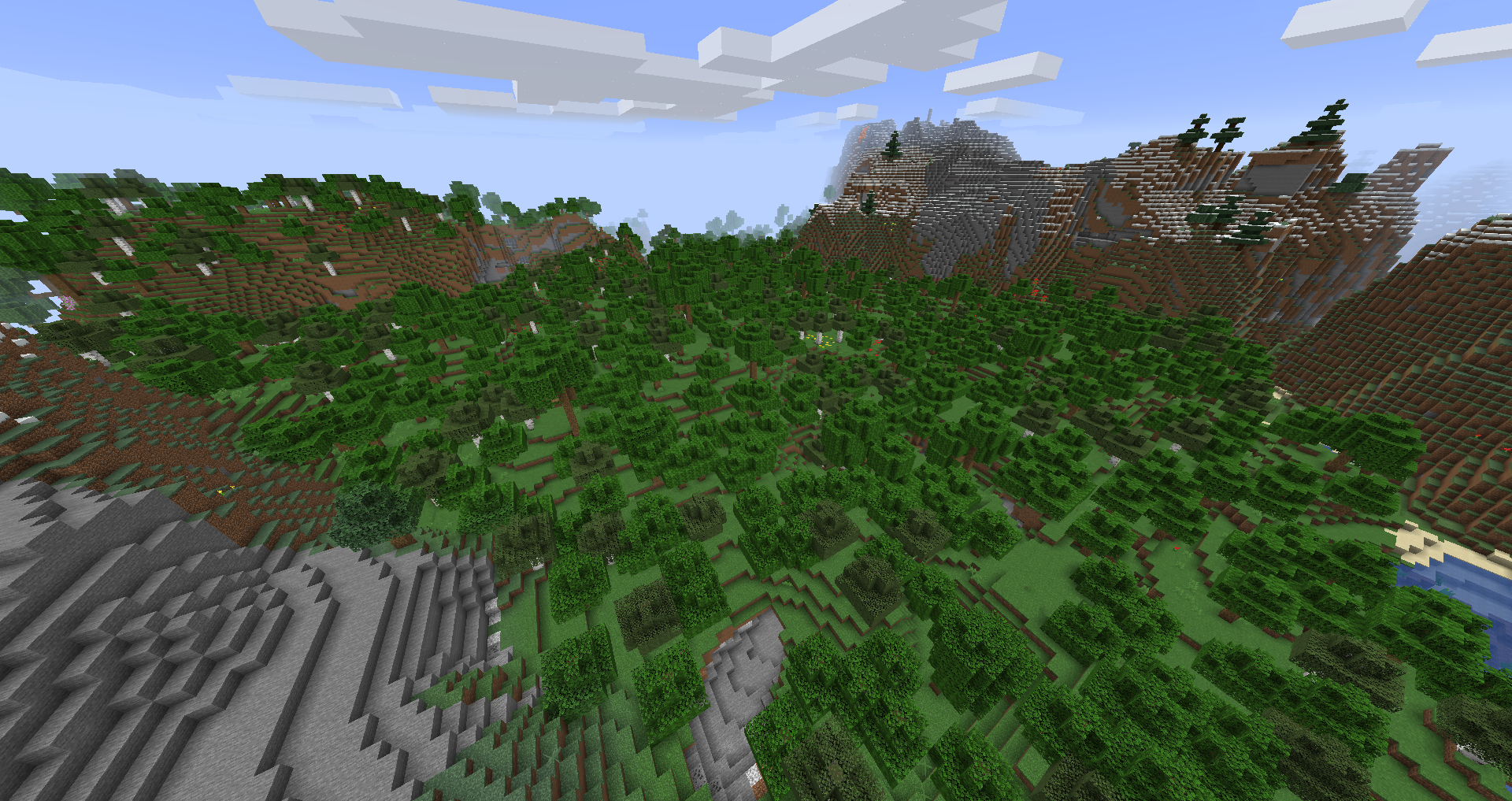 The forest biome is common and densely wooded with oak and birch trees. Wolves spawn here.
