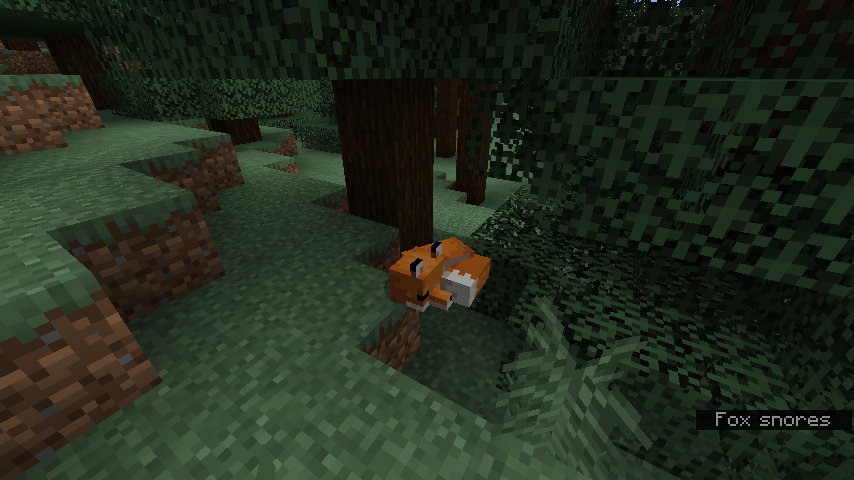 During the day, if a thunderstorm is not occurring, foxes attempt to find a space with a sky light level of 14 or less and sleep. Block light has no effect on this. While it sleeps, it slowly moves its head up and down. A fox wakes if approached by a player or mob. Foxes do not flee if the player approaches while sneaking until the player gets on an adjacent block.