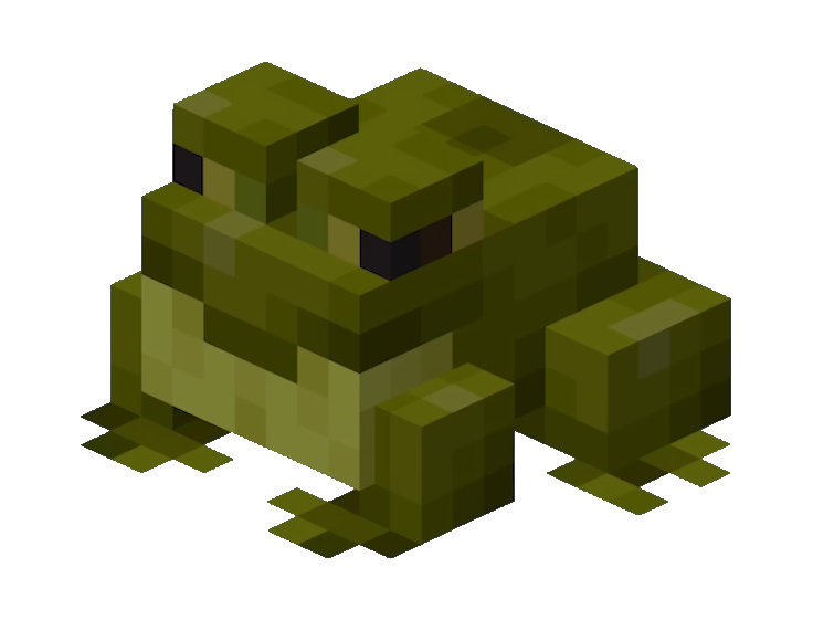 A frog is a passive mob found in swamps. Frogs eat small slimes and magma cubes. A frog can produce one of three kinds of froglights from eating magma cubes, depending on the kind of frog.
