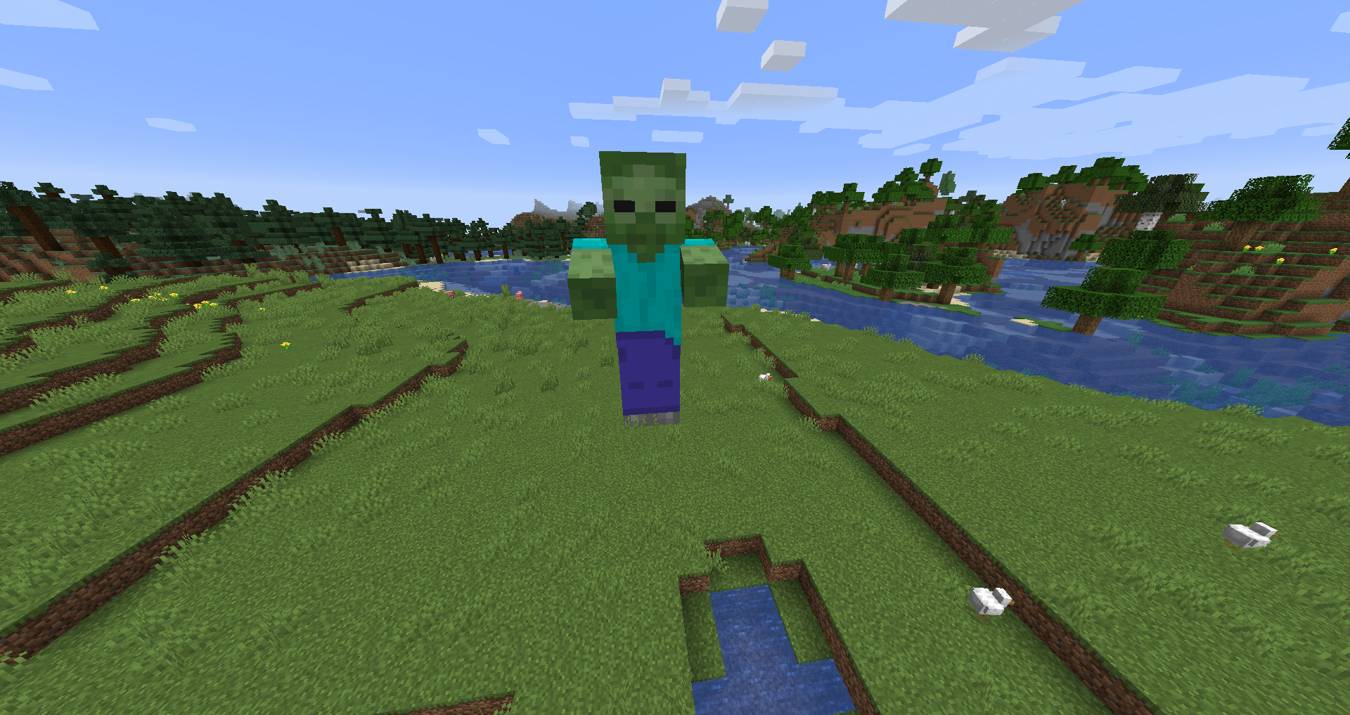 Giants are close to 12 blocks tall, and it uses a six-times-enlarged zombie model.