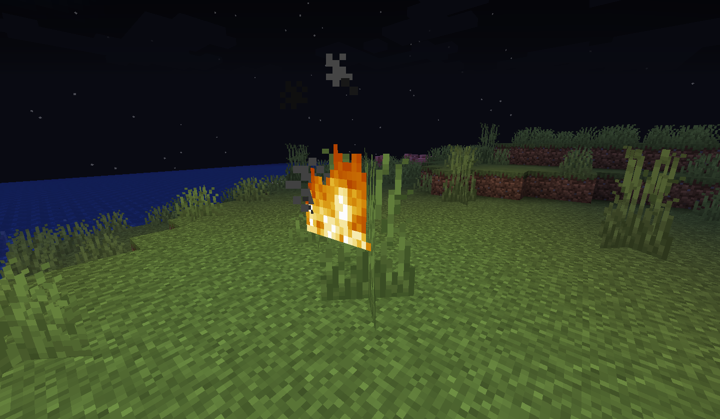 - Grass cannot be directly set on fire from lightning. However, fire from nearby blocks can spread to it. Oddly enough, the top of grass can be lit but it does not burn this way. When any kind of grass is set on fire, the fire seems to hover just over the grass, as if it were a full block.