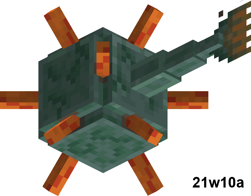 Guardians swim around in water, attacking any players, squid, glow squid, or axolotl that come into range of its laser. They swim in abrupt charges, moving their tail rapidly when doing so. When swimming, their spikes retract. When not swimming, they sink slowly and their spikes extend and quiver.