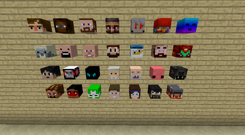 The player can wear heads, similarly to pumpkins or helmets. This overlays the second layer of the player's skin.