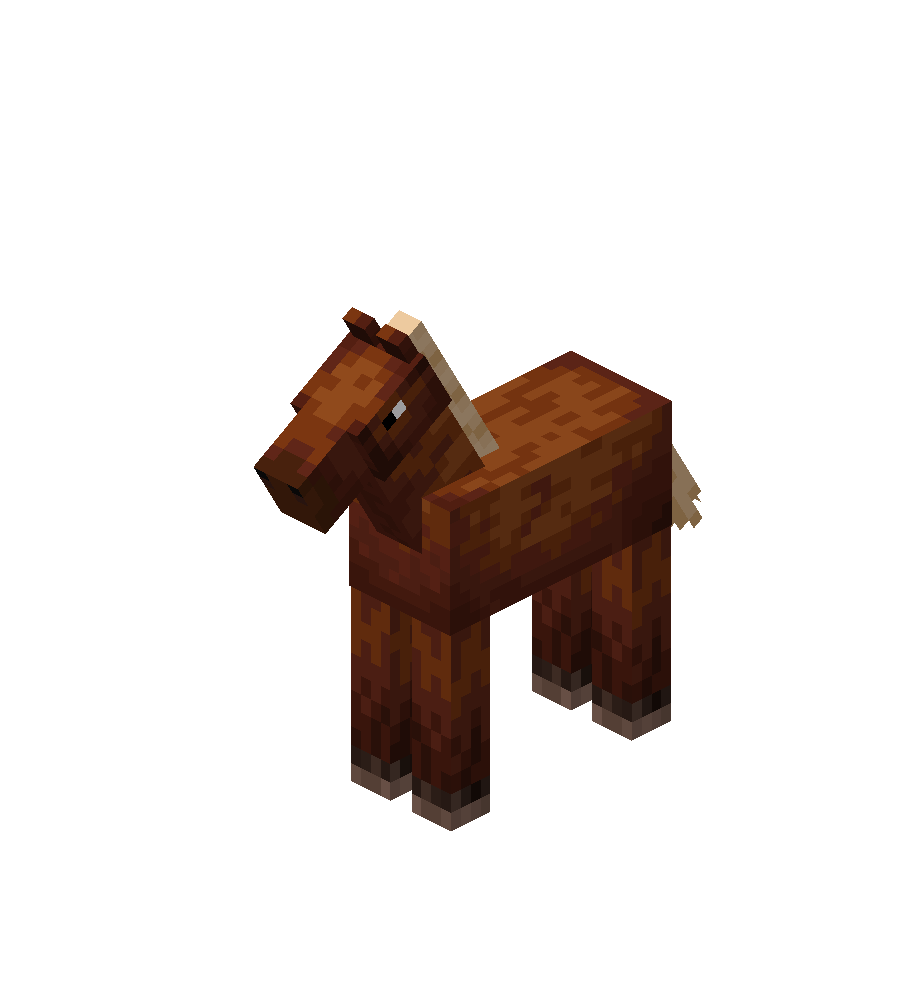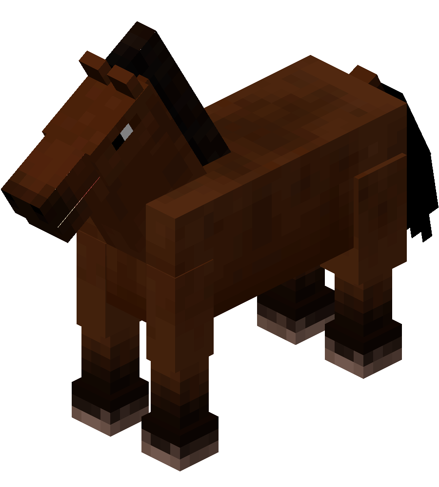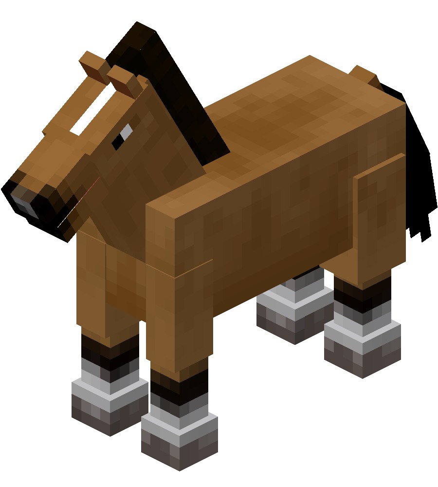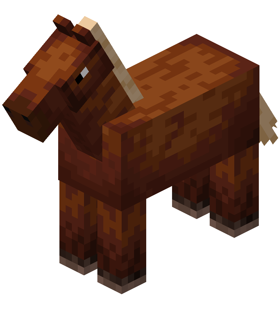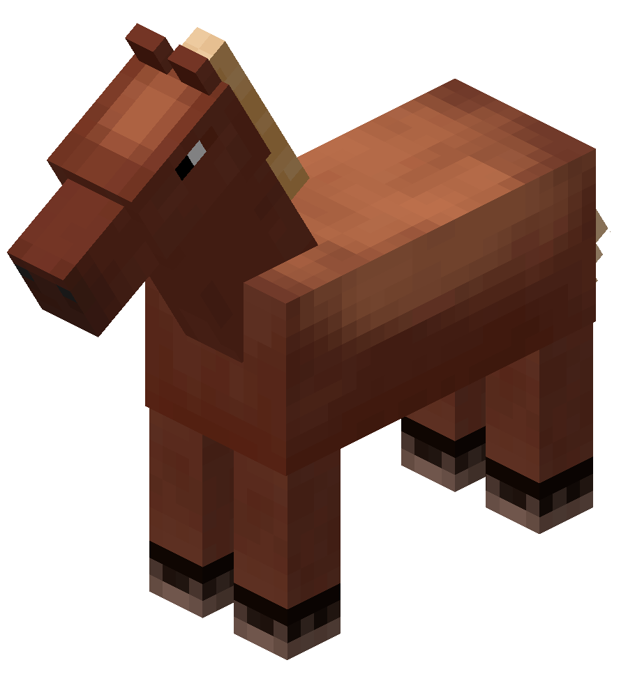 Horses are passive mobs that can be ridden when tamed and saddled.
