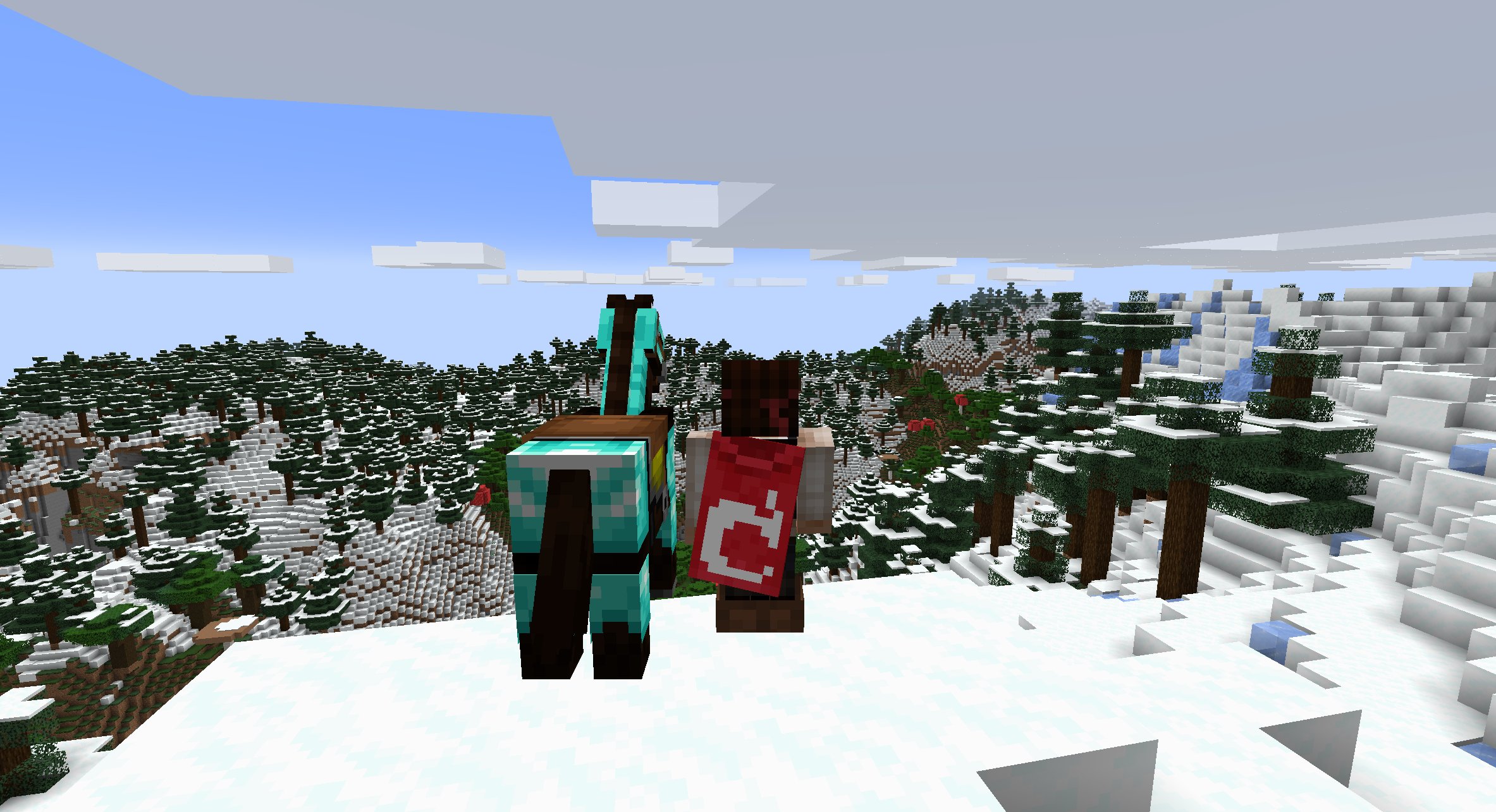 Jeb and Dinnerbone riding horses. 1.6 banner.