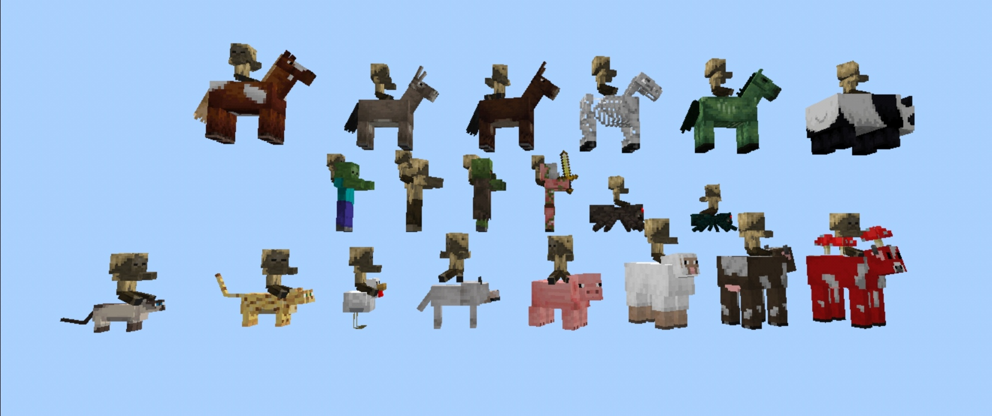 All mobs that can be ridden by baby husks in Bedrock Edition.