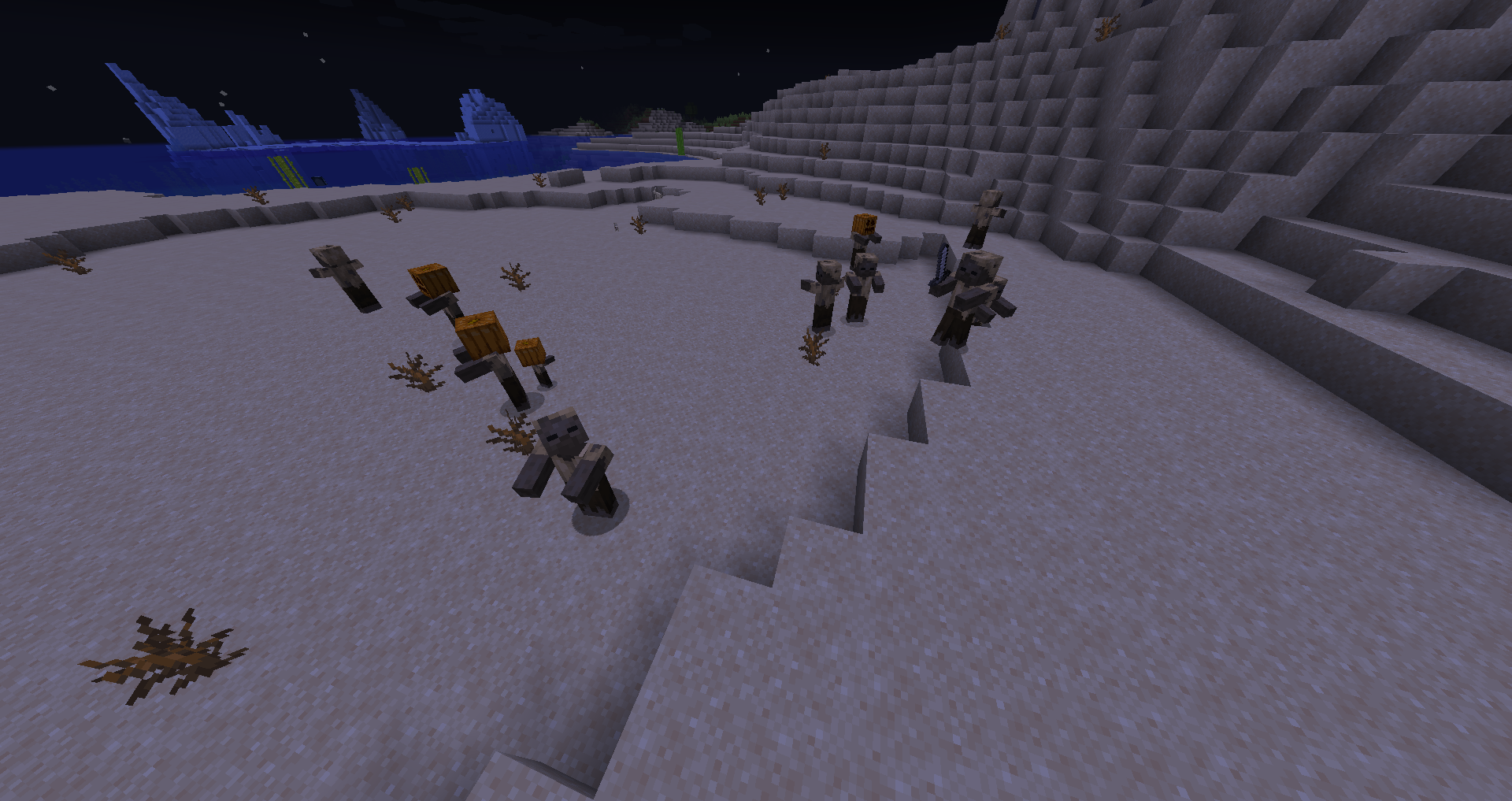 Husks spawn at a light level of 0 in the desert, desert hills, and desert lakes biomes, mostly replacing zombies in these biomes.