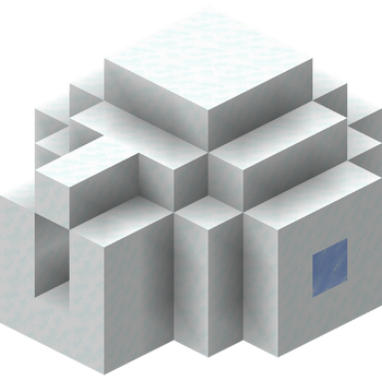 Igloos may serve as a small house and are composed primarily of snow blocks, sheltering a carpeted interior containing a bed, furnace and crafting table.
