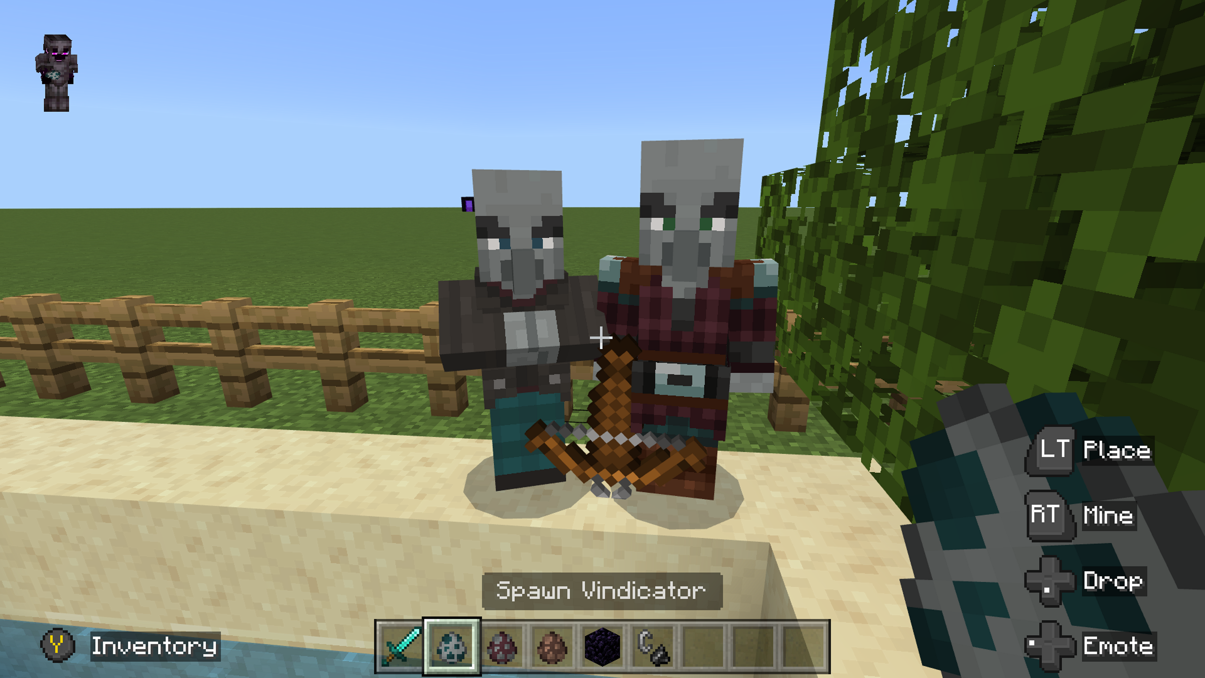 Vindicators charge at you while attempting to hit you with their iron axe. They spawn in raids and woodland mansions.