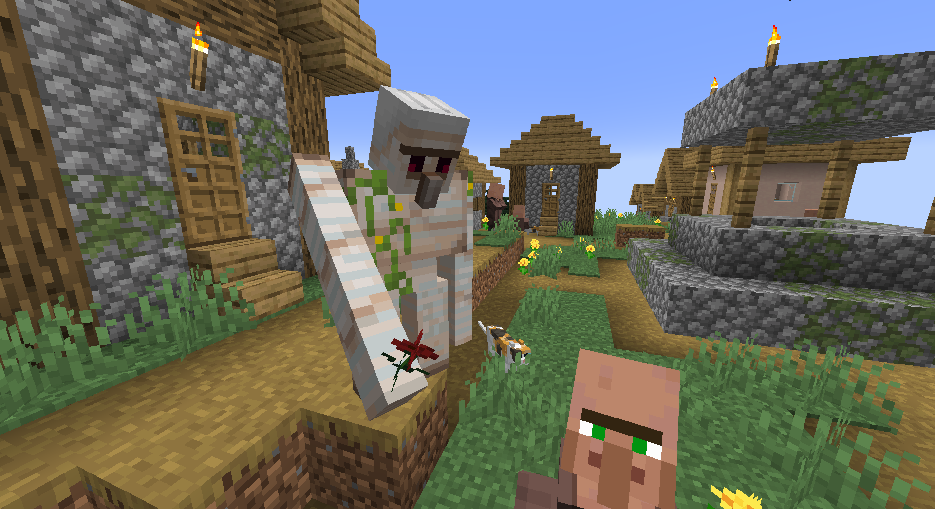 An iron golem offering a poppy.