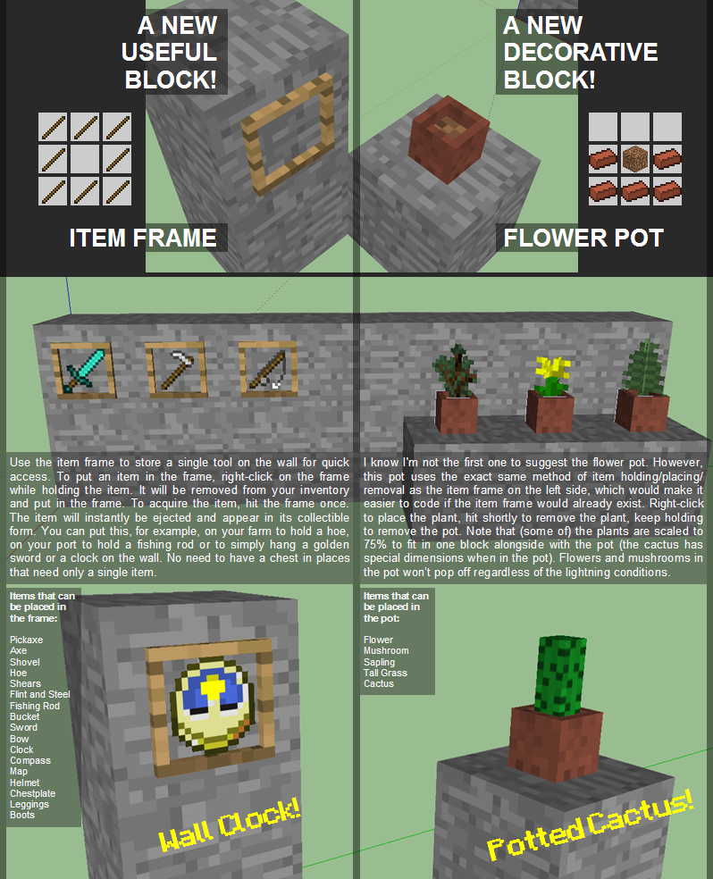 Suggestion for itemframes.png|Original Reddit image suggesting item frames and flower pots.