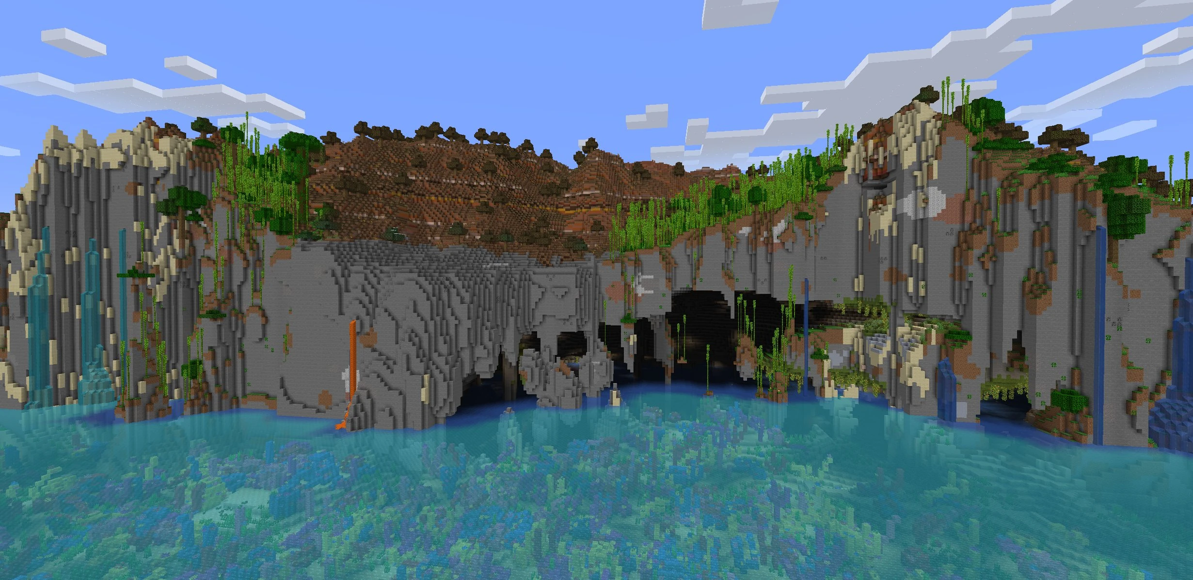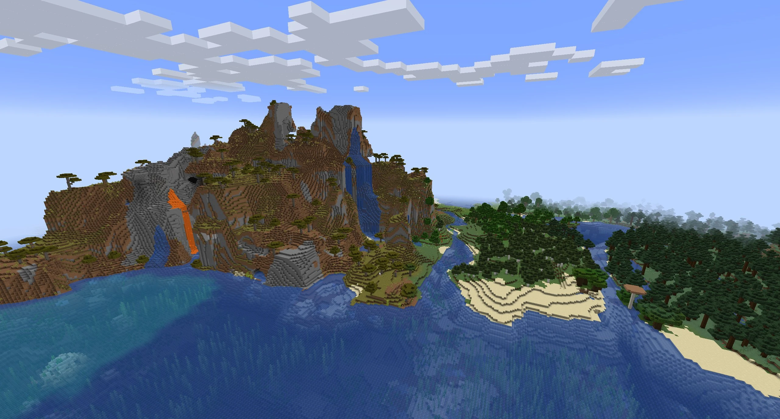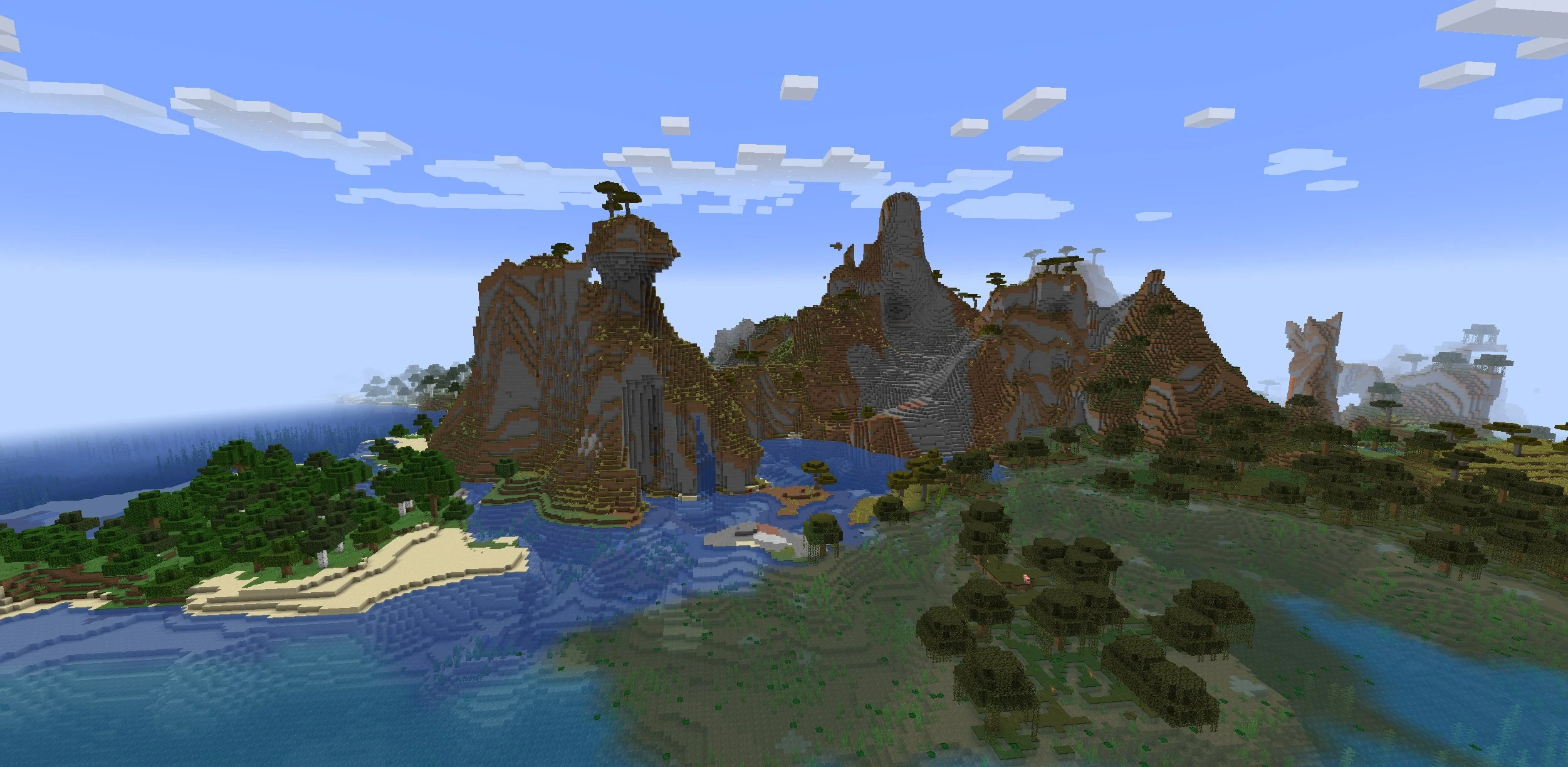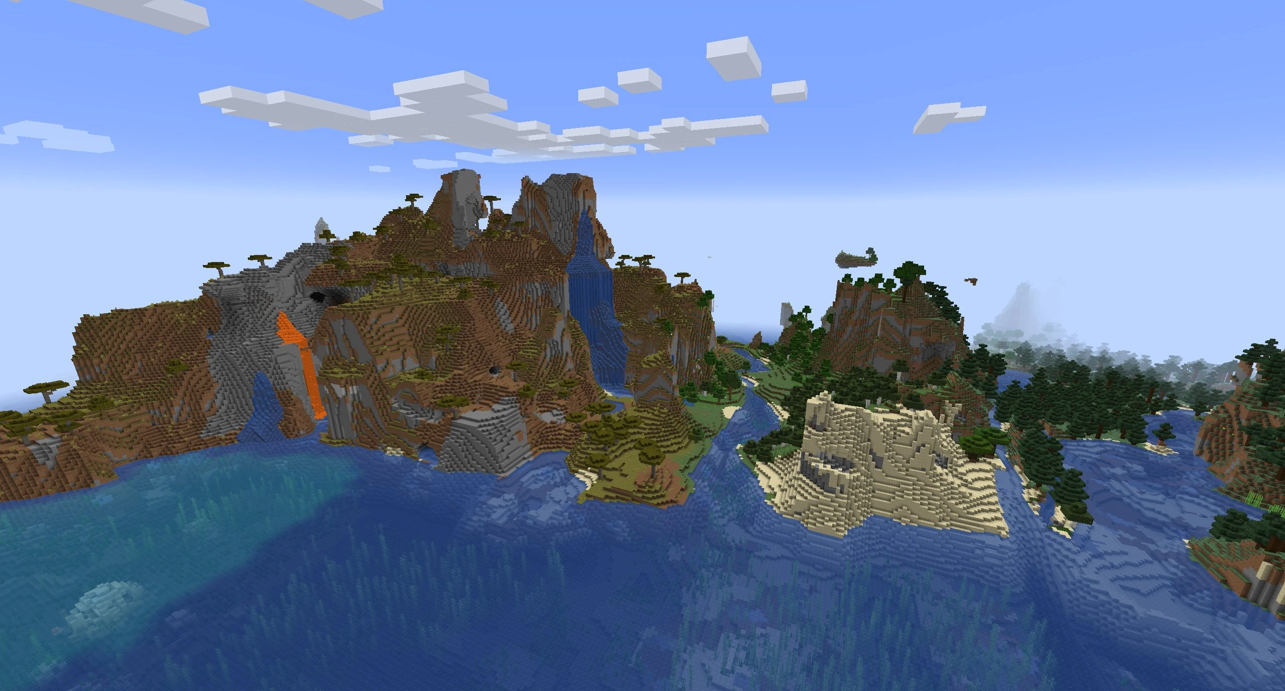 - Reduced the amount of shattered terrain and shattered savanna biome, replacing some of that space with flatter beaches instead.