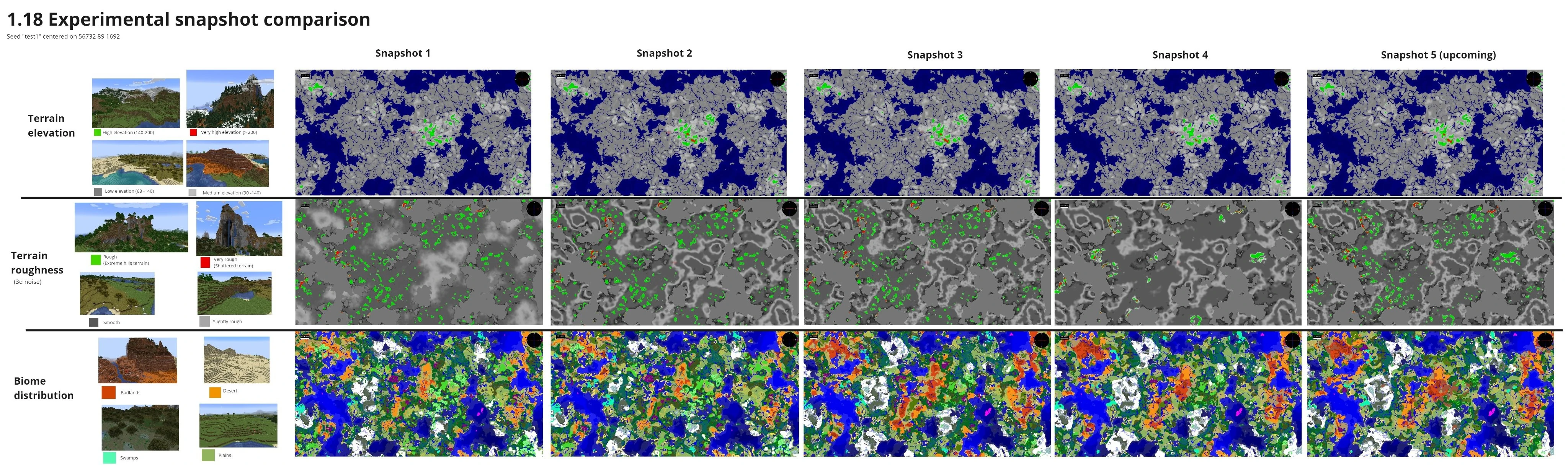 1.18 experimental snapshot 5 is the fifth experimental snapshot for Java Edition 1.18, released on August 25, 2021,[1][2] which makes numerous changes and tweaks to world generation.