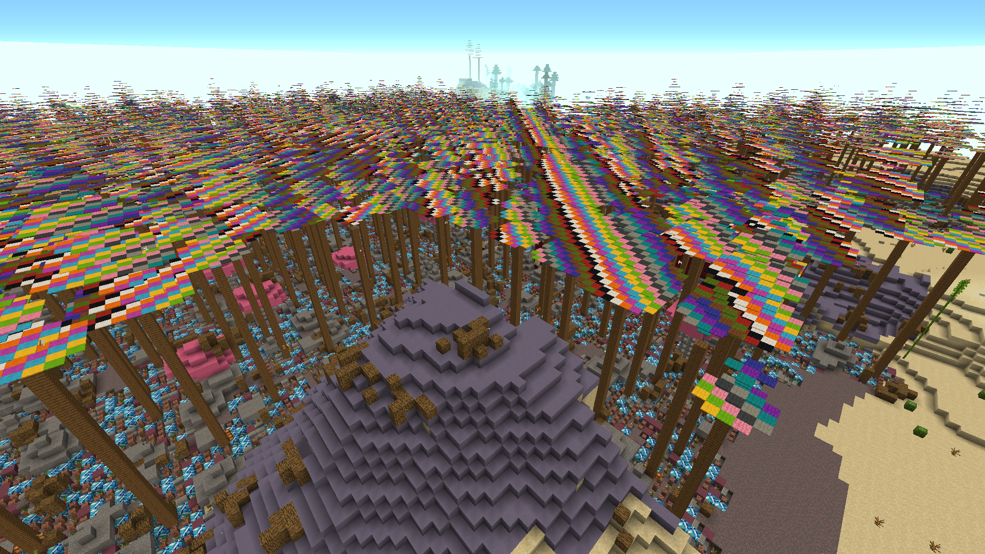 20w14∞ (labeled as 20w14infinite in the launcher, and 20w14~ in-game) is an April Fools' joke snapshot, supposedly the first and only snapshot for the "Ultimate Content" update, released on April 1, 2020,[1] which adds new procedurally generated dimensions that randomize existing elements of the game and several ways to access them. 20w14∞ is a fork of 20w13b, which was the most recent snapshot at the time.