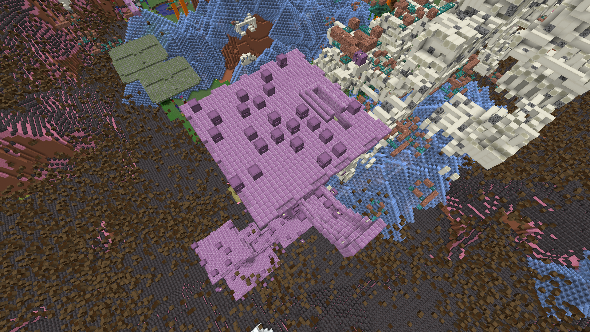Large quantities of shulkers generating with end cities within the dimension "fry".