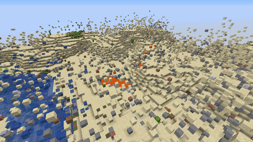 - The blocks that make up various features (e.g. ores, ice spikes, lakes) will be randomly swapped.
