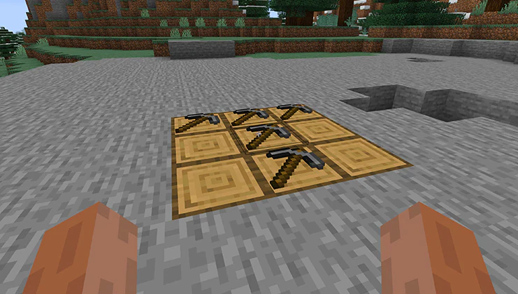 - Items can be crafted by placing a recipe above a grid of crafting tables, throwing the last item.