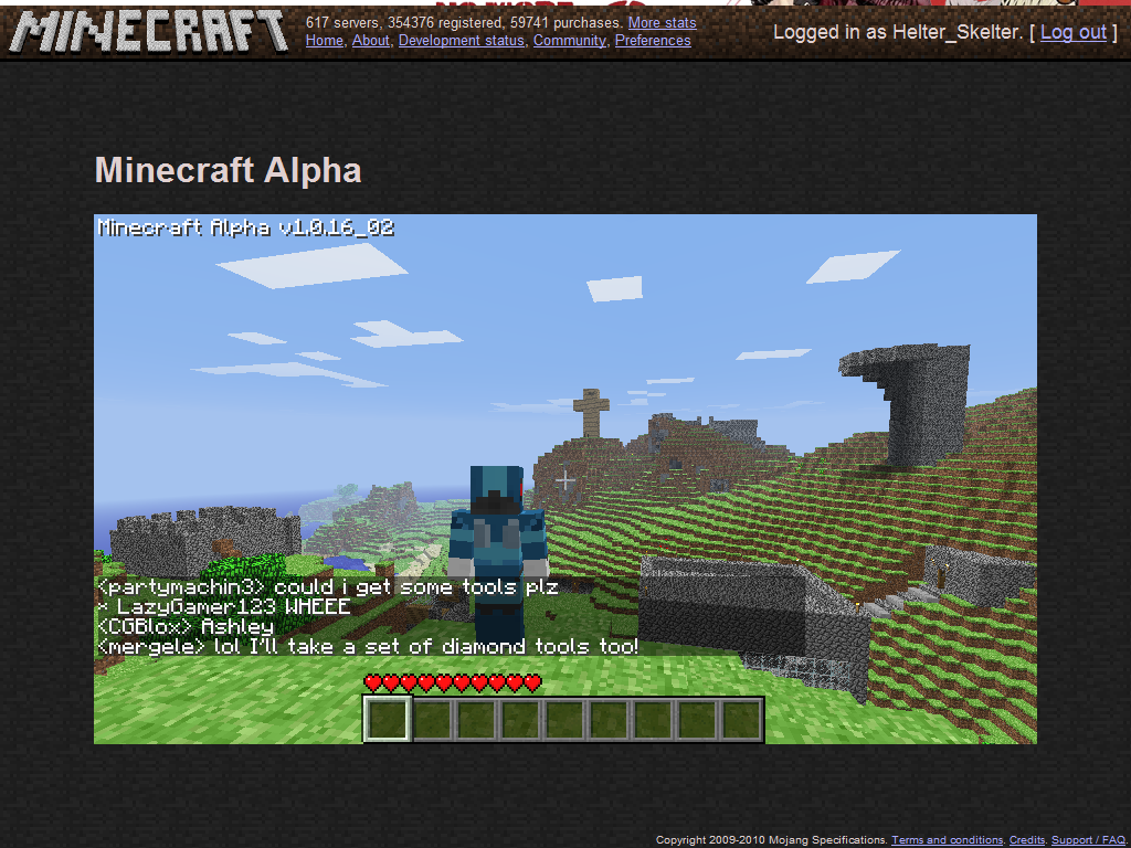 Alpha v1.0.16_02[1] is a version of Minecraft (Java Edition) released on August 13, 2010. Corresponding server version 0.1.3 was released on August 17, 2010.