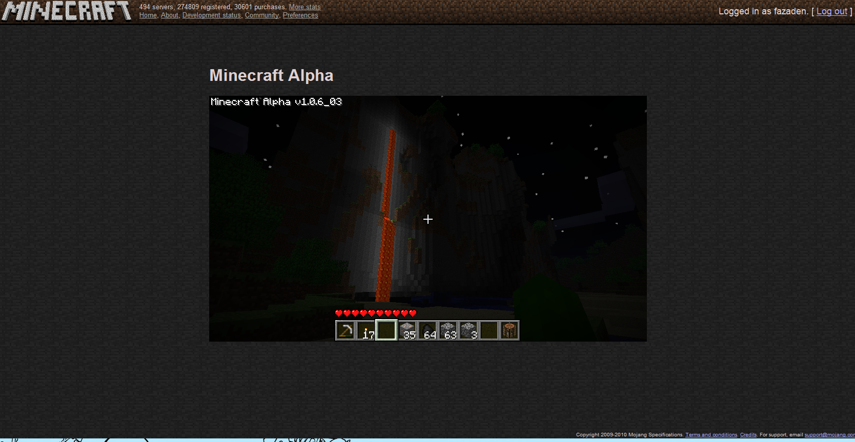 Alpha v1.0.6_03[1] is a version of Alpha released on July 17, 2010,[2] to fix a game crash.